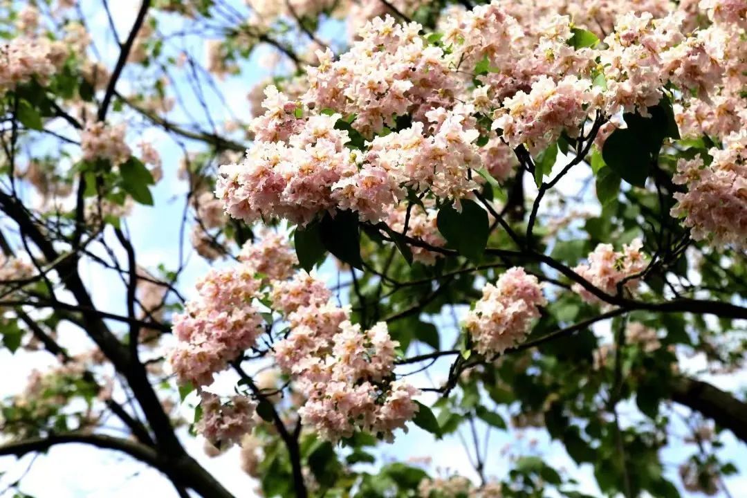 楸树是一种落叶乔木,叶子呈三角状卵形或长椭圆形。楸树是中国珍贵的用材树种之一,枝干挺拔,楸花淡红素雅,自古以来楸树就广泛栽植于皇宫庭院、胜景名园之中。