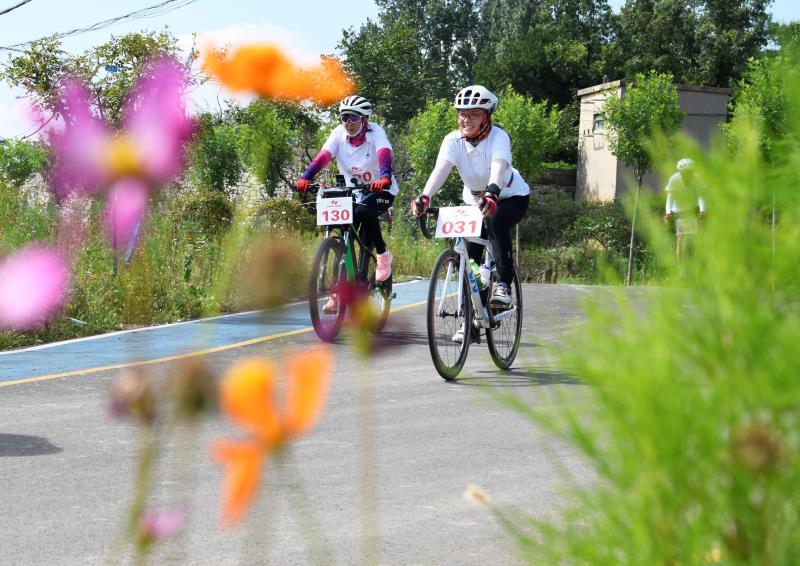 8月7日,自行车骑行爱好者在枣庄市山亭区翼云湖环湖绿道上骑行。为迎接“全民健身日”,枣庄市山亭区在徐庄镇翼云湖环湖绿道举办自行车骑行比赛活动,吸引众多自行车骑行爱好者参加,在青山绿水间享受骑行健身的乐趣。