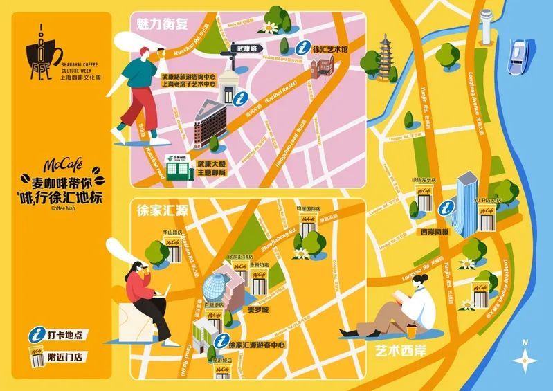 徐汇区内现有253 处历史优秀建筑、15 家博物馆、18 家艺术场馆、28 家演艺场馆、12 处对公众开放的名人故居、4 家 4A 级旅游景区,还有各类特色街区、多元空间、特色小店构成的立体型文旅商生态圈。咖啡文化周期间,徐汇文旅联合麦咖啡推出了“麦咖啡带你‘啡’行徐汇地标”活动,带领市民游客体验“魅力衡复”、徐家汇源和“艺术西岸”三条风格迥异的打卡线路。
