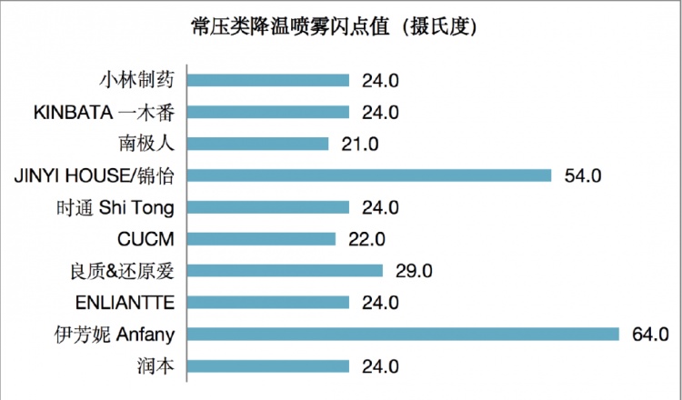对剩余10件常压降温喷雾进行闪点试验,闪点值在21至54摄氏度之间,具有一定程度的易燃性。通过对样品成分的查验,发现9件样品含有乙醇成分。