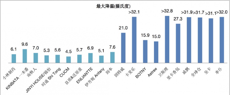 加压类降温喷雾的降温效果均在15℃以上,有6件样品的降温效果超过30℃,测试温度均降低至0℃以下。