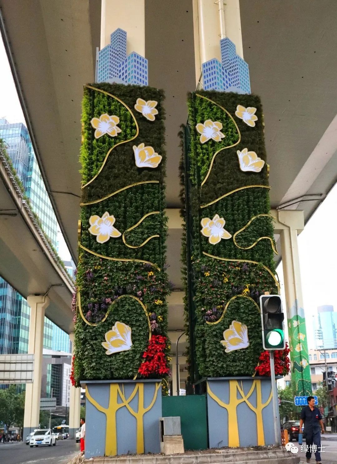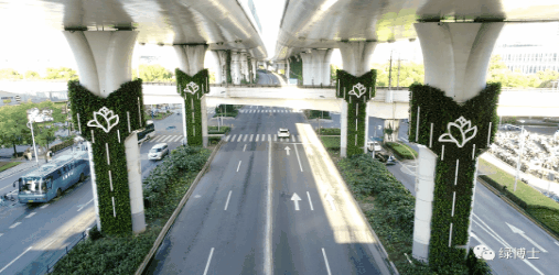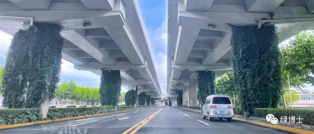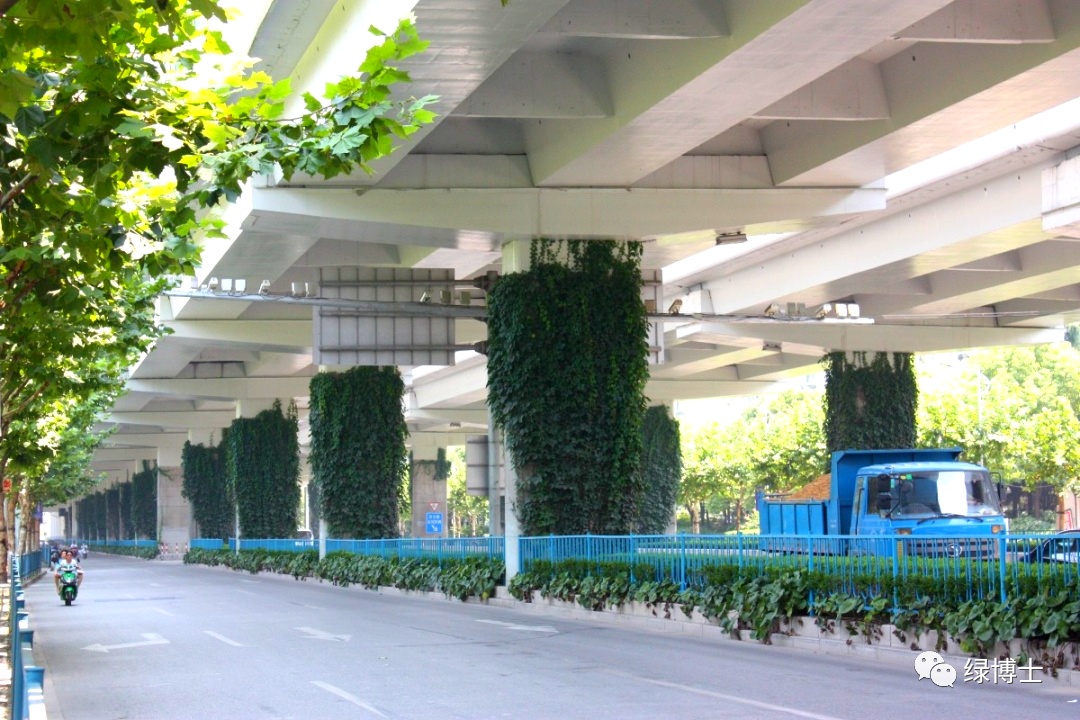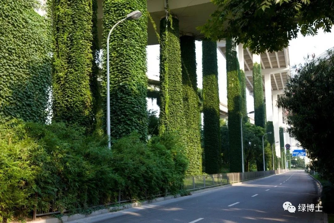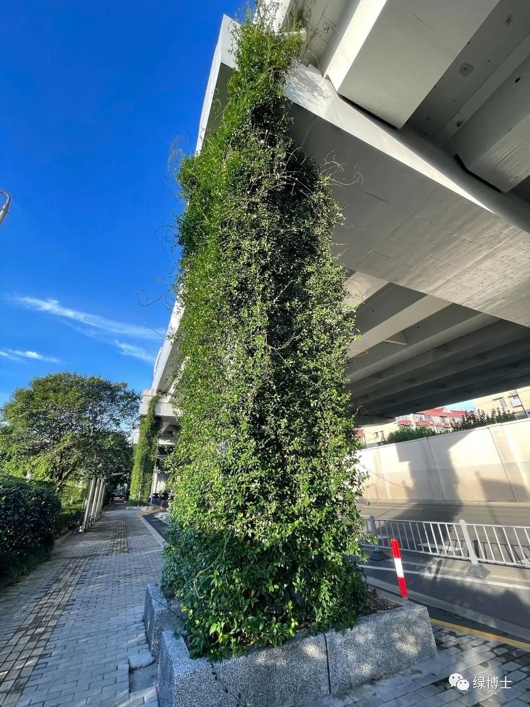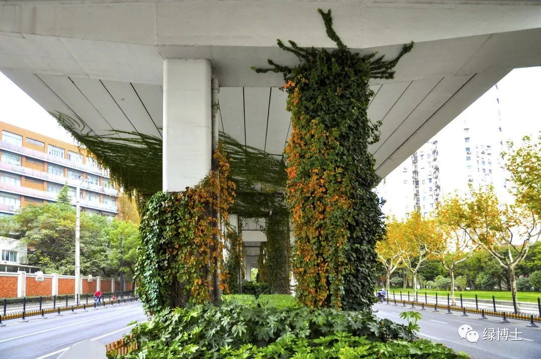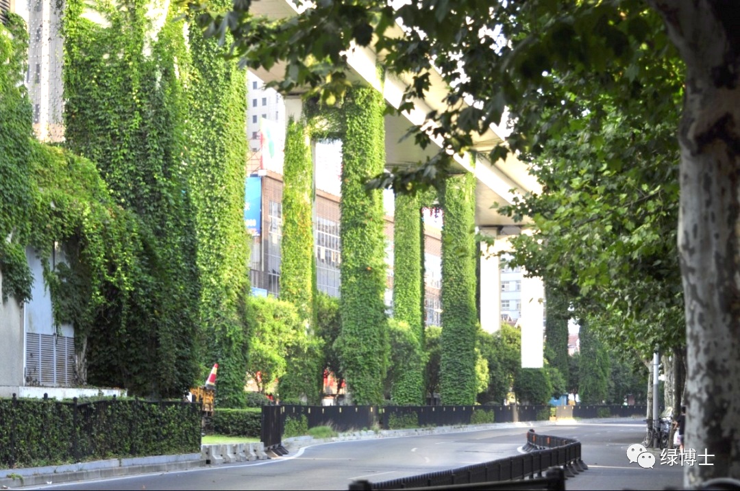市绿化市容局介绍,绿化景观点缀着申城的道路楼宇,夏日的一抹抹绿色,也为城市带来生机勃勃。在林立的高架桥下就有着一群桥柱绿化,默默地装点着那些“水泥森林”,成为了别具一格的景观。