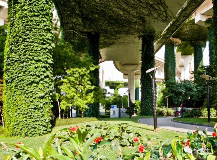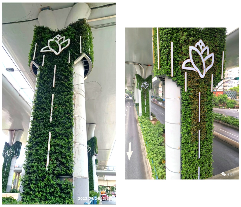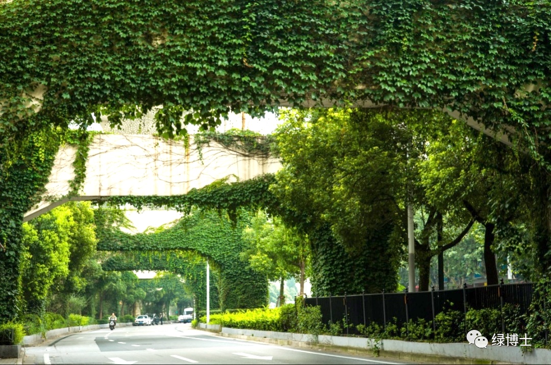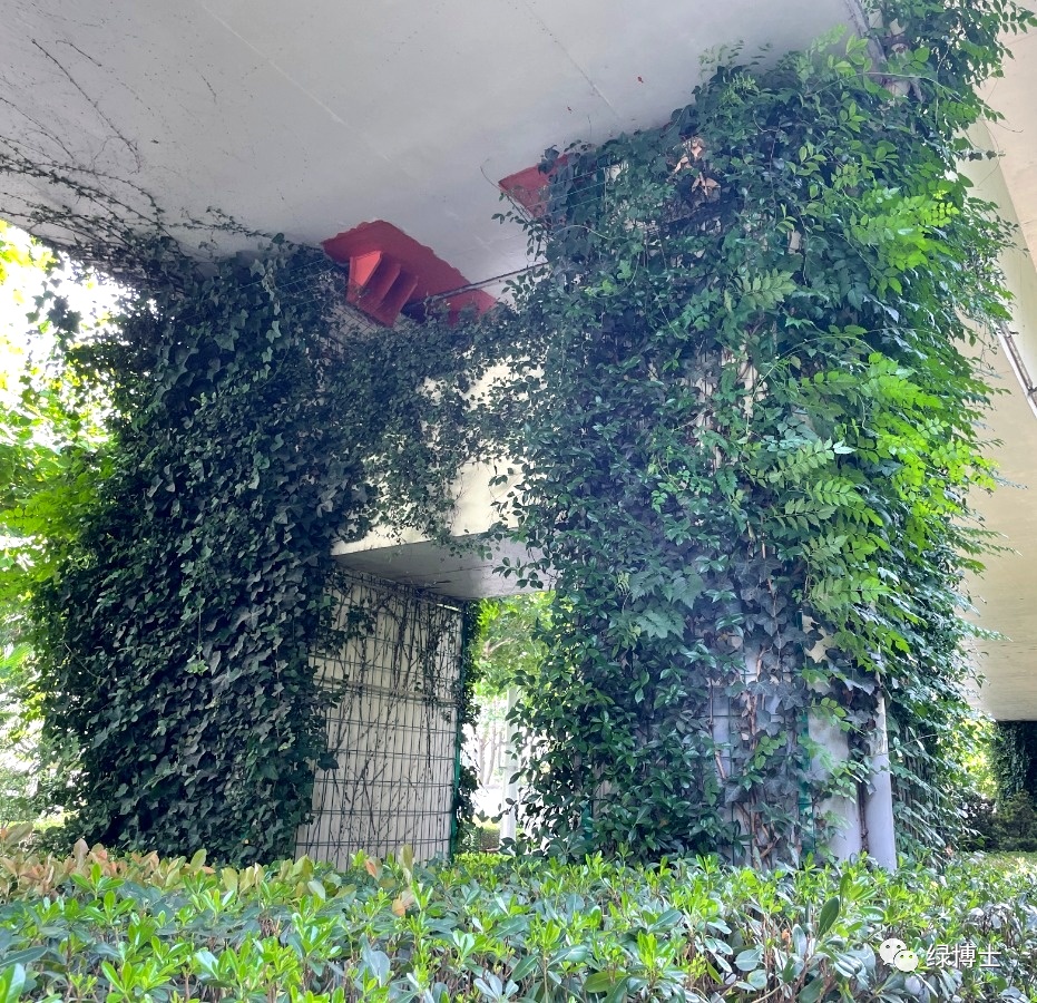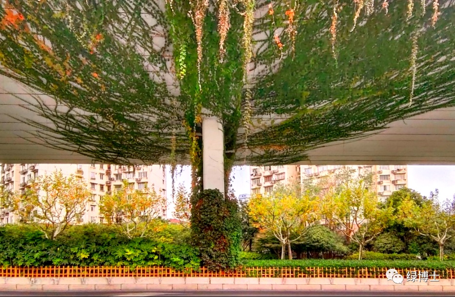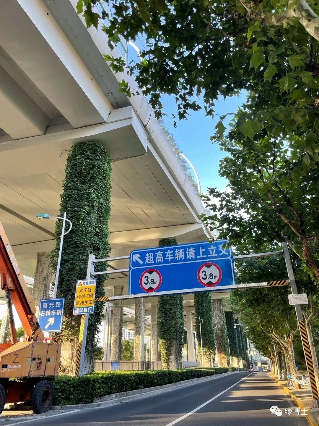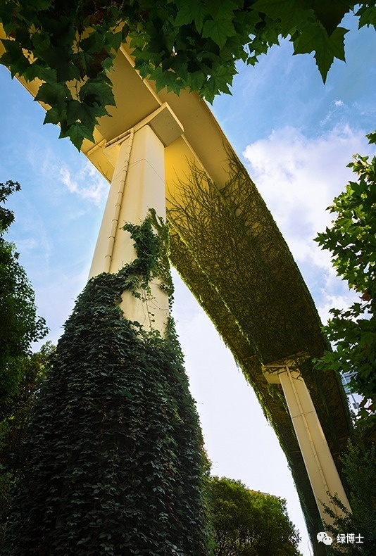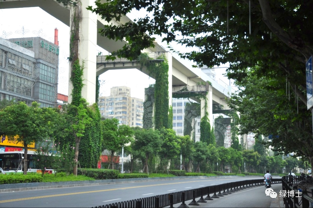 市绿化市容局介绍,绿化景观点缀着申城的道路楼宇,夏日的一抹抹绿色,也为城市带来生机勃勃。在林立的高架桥下就有着一群桥柱绿化,默默地装点着那些“水泥森林”,成为了别具一格的景观。