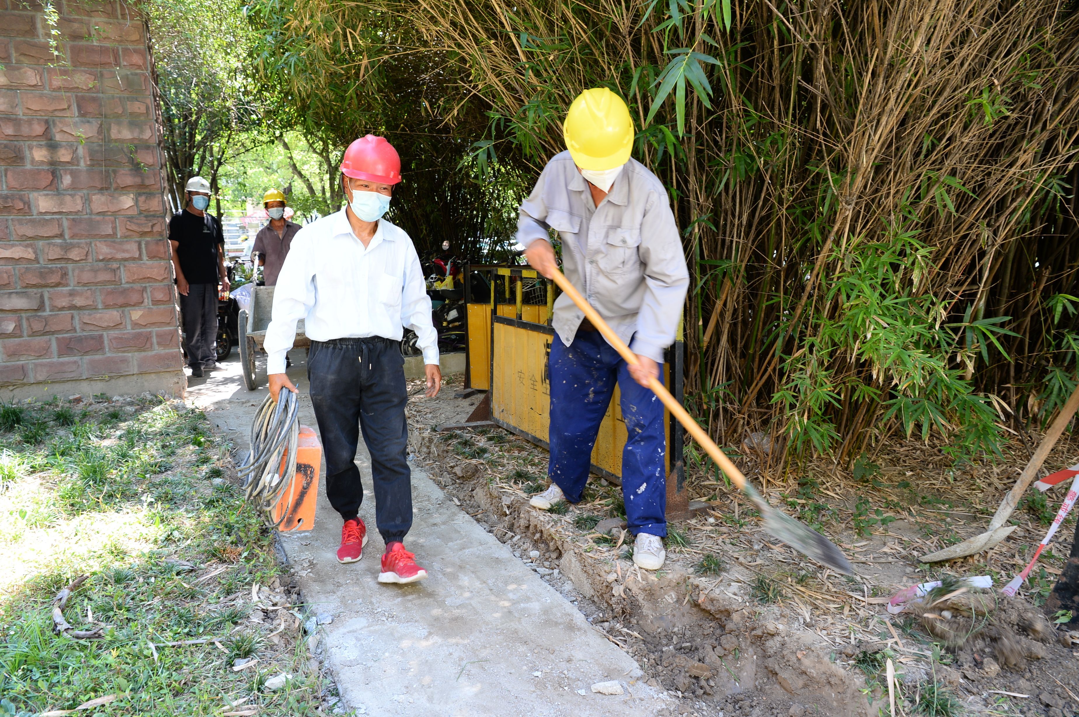 在严格遵守施工所在小区疫情防控要求的同时,安排施工错时避开高温时段,并要求施工单位为施工人员做好后勤保障工作,现场需配备了毛巾、风油精,应急的药品等必要的防暑降温物品,还根据气温变化及时调整工作时间和劳动强度,确保一线作业人员的身心健康和生命安全。