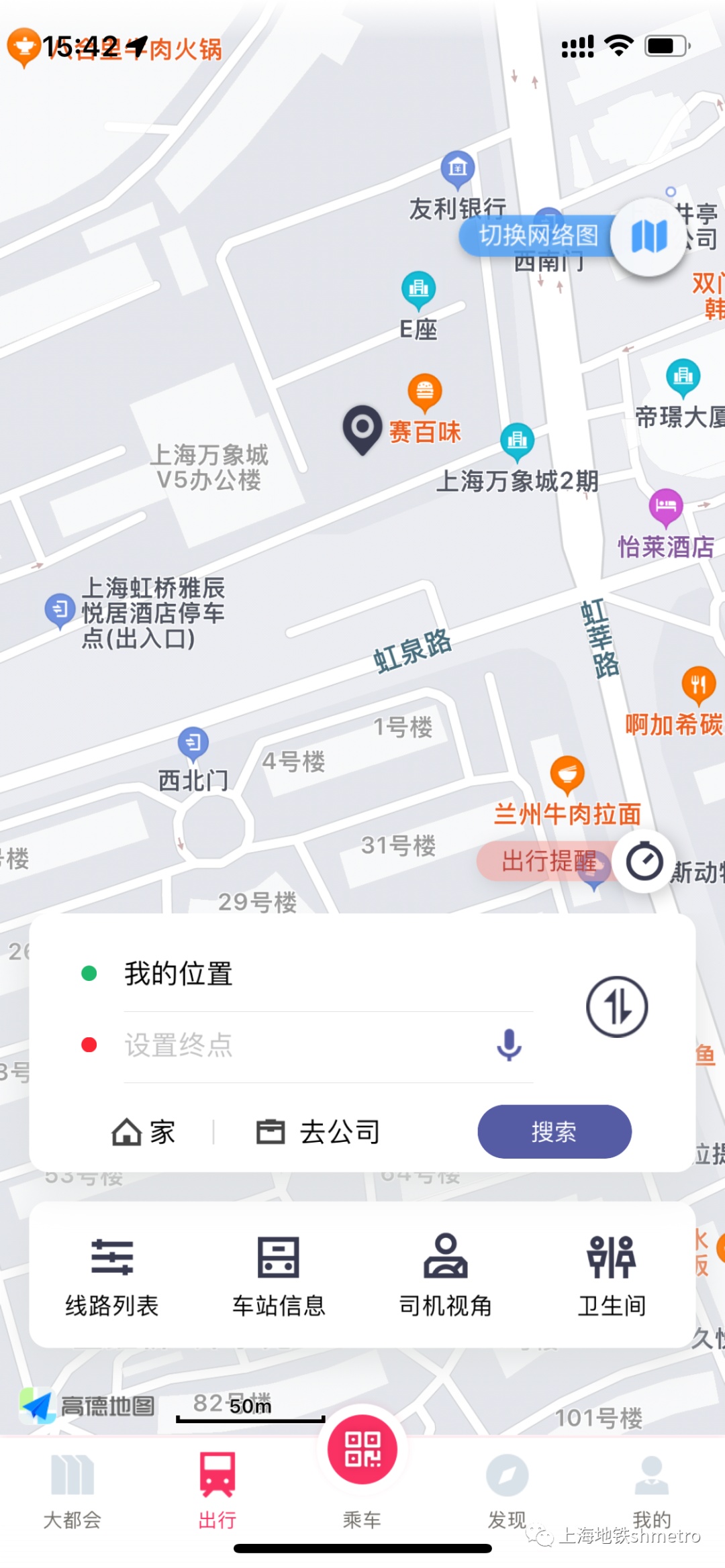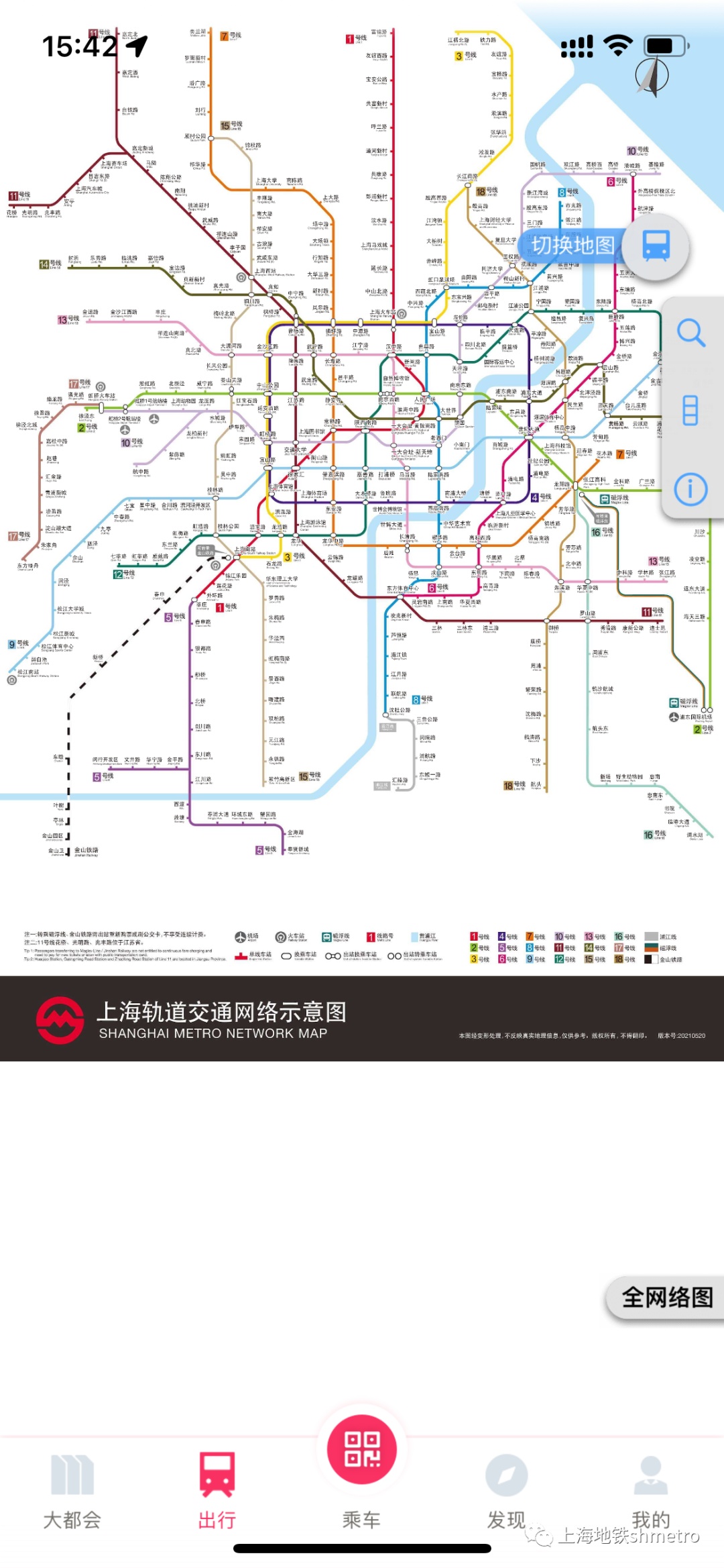 用户可于Metro大都会端内便捷查看上海地铁全网络图,并可随时切换地图与地铁网络图状态。
