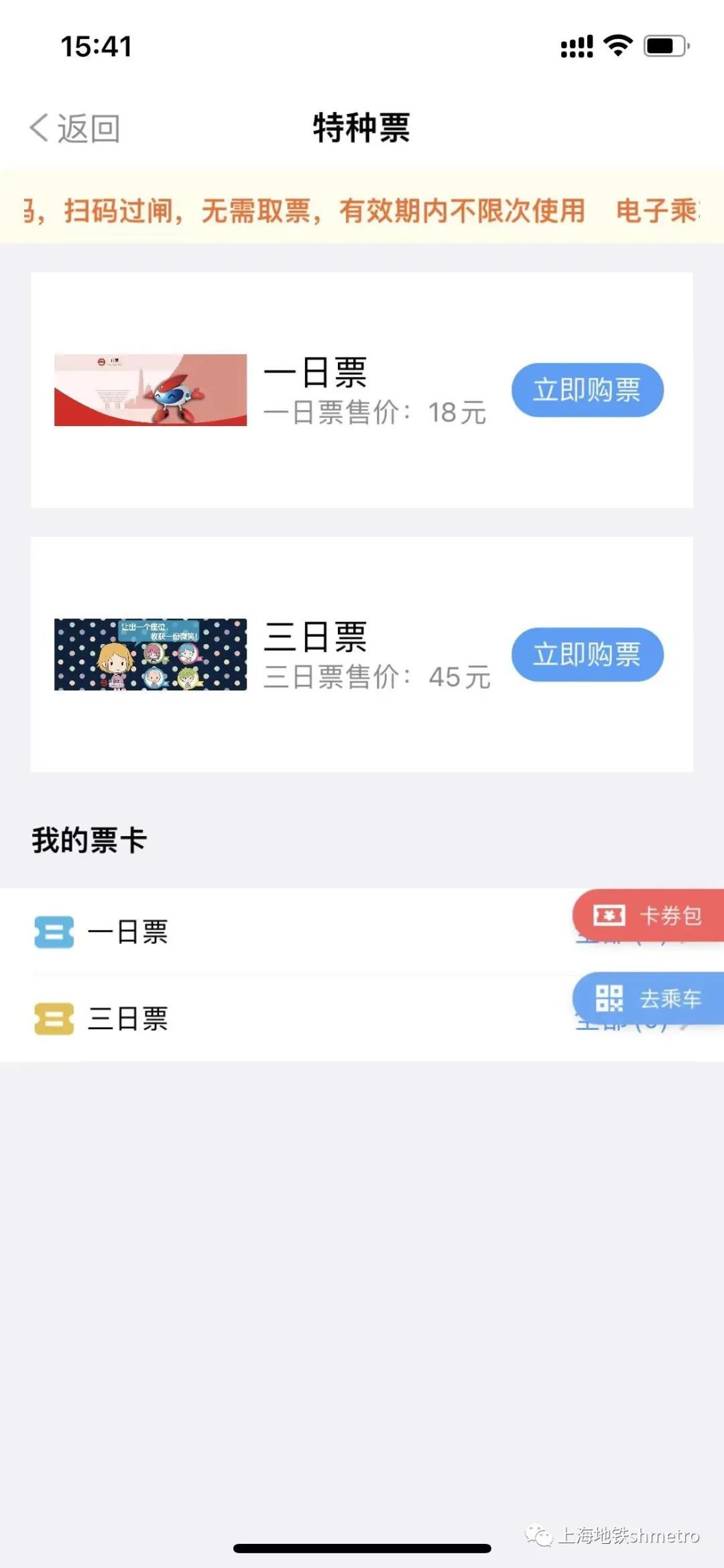 Metro大都会支持一日票、三日票及同行票乘车。用户可根据自己的出行计划、出行人数,选择不同的乘车票种,以实现更为优惠、便捷的出行体验。