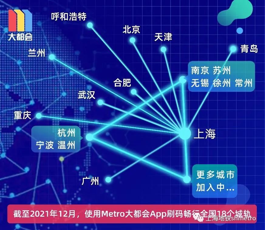 Metro大都会支持互联互通功能,在其他加入互联互通的城市中,用户同样可以通过Metro大都会扫码乘坐地铁,无需单独下载其他App。目前互联互通已接入包括上海在内的18个国内城市。