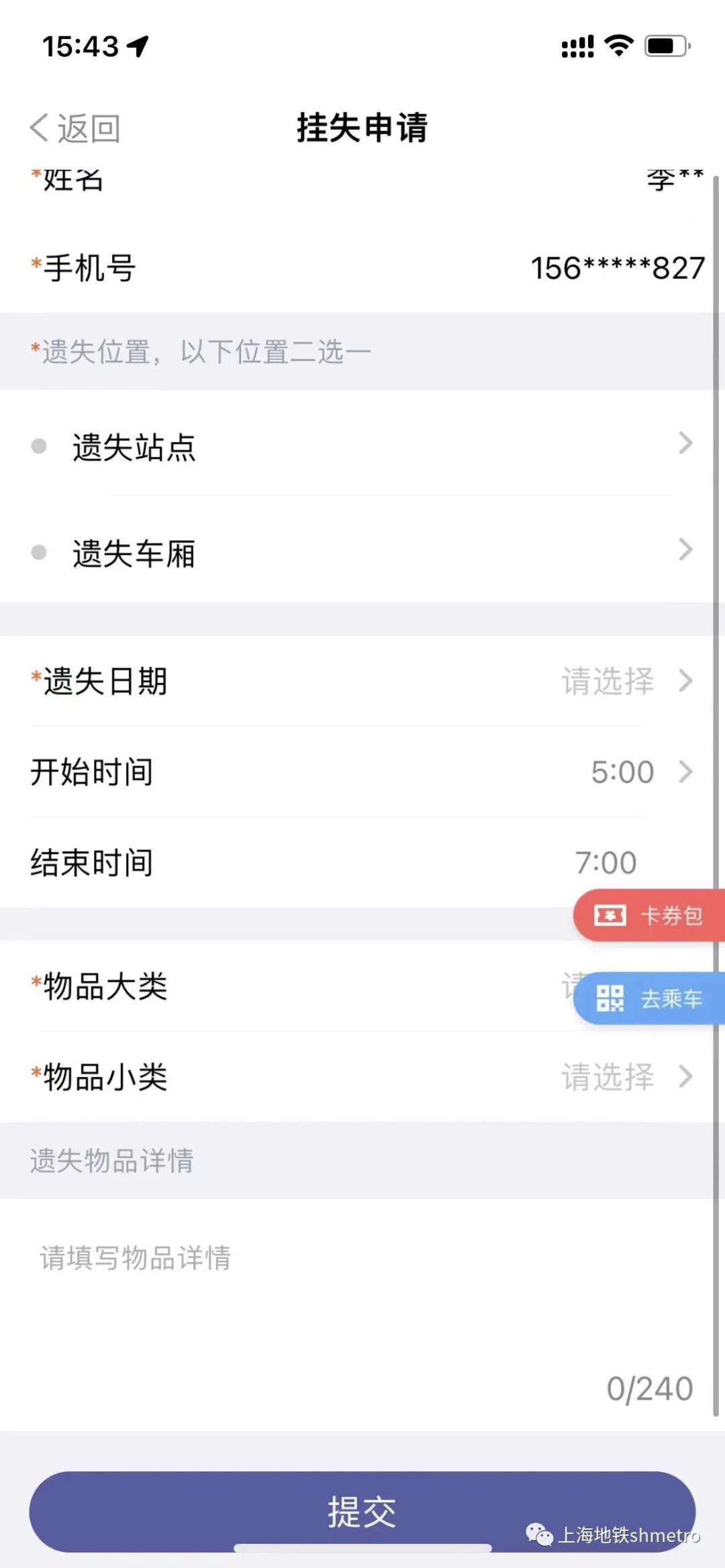 Metro大都会支持失物招领功能,当用户遗失物品后,可在此提交挂失申请,并可以随时查看寻单进度。