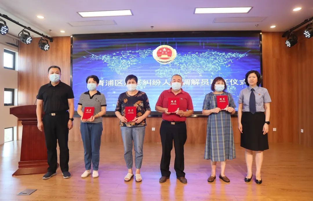 青浦区委政法委副书记郭爱民、区检察院副检察长柳燕向4名人民调解员颁发聘书。