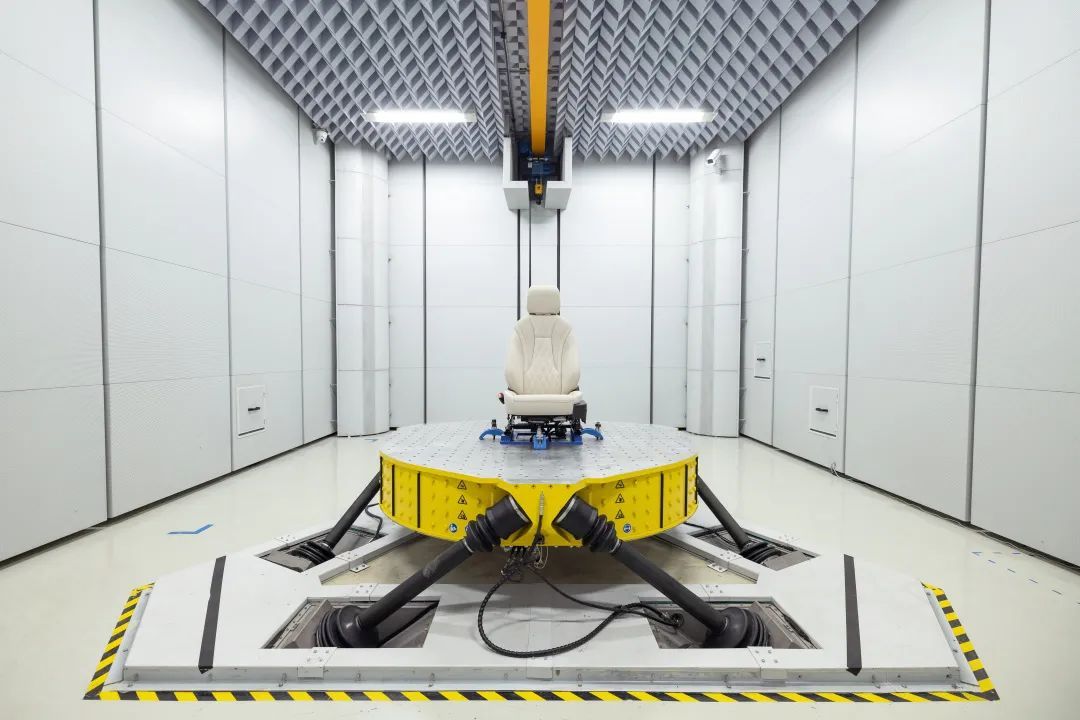 类似声学环境仓的试验在这里的实验室反复上演。在多轴激振异响实验室,座椅等零部件被摆在测试平台上经受十多天,甚至一个月以上的振动测试,确保零部件能够承受住经年累月的考验,匹配车辆的使用寿命;在整车四立柱实验室,整车在沥青路、减速带、鹅卵石路等各类路况的表现均会被测试记录,保证车辆内饰面对各种路况时,品质始终如一……