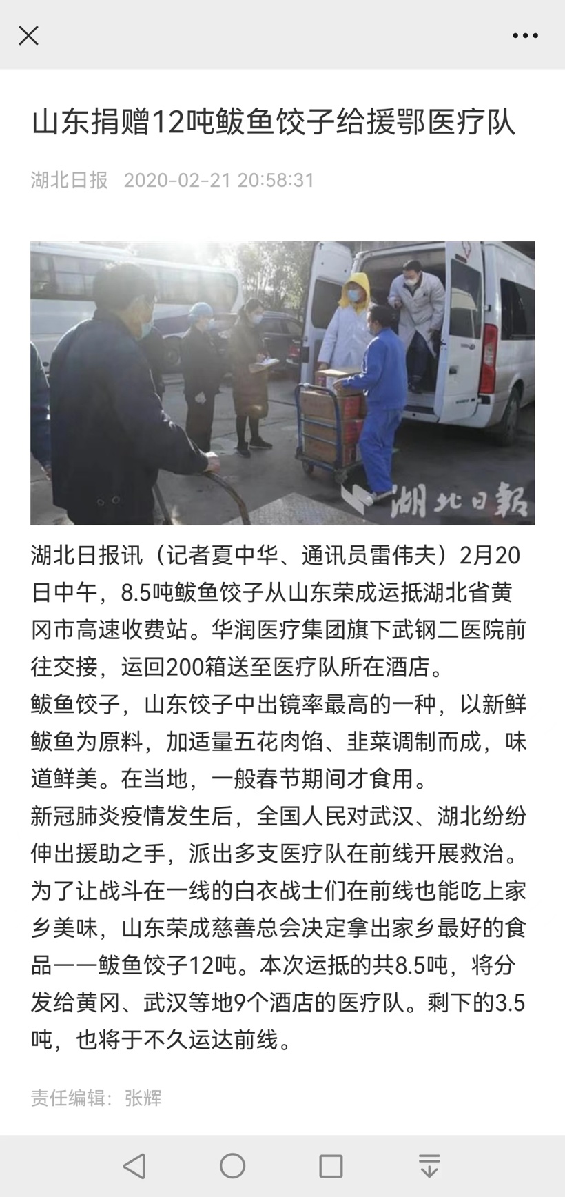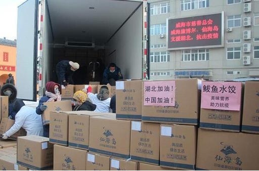 后来,山东又捐赠了8.5吨鲅鱼饺子运往湖北黄冈。