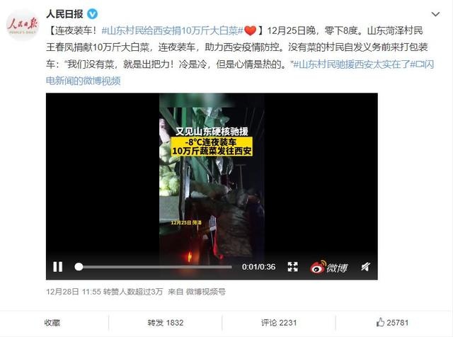 去年年底,西安疫情突发。继菏泽成武县的村民分别捐赠10万斤白菜和20吨洋葱助力西安抗疫后,曹县又捐赠了8万斤油菜。