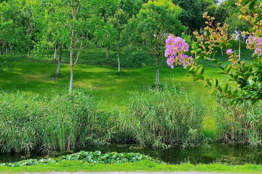 紫薇花点缀在绿叶之间