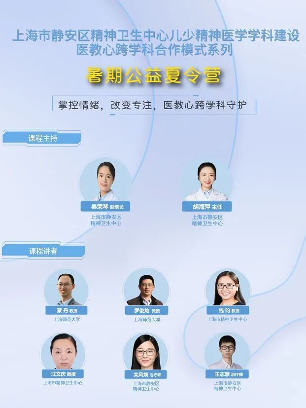 据悉,为了更好地帮助儿童青少年及其家庭,静安区精神卫生中心暑期公益夏令营于8月3日开营。此次暑期公益夏令营分为情绪守护周、ADHD守护周等两大主题。本周的夏令营将聚焦ADHD守护展开,特邀医疗和教育系统的知名专家学者开展线上讲座,共同守护孩子的健康发展。