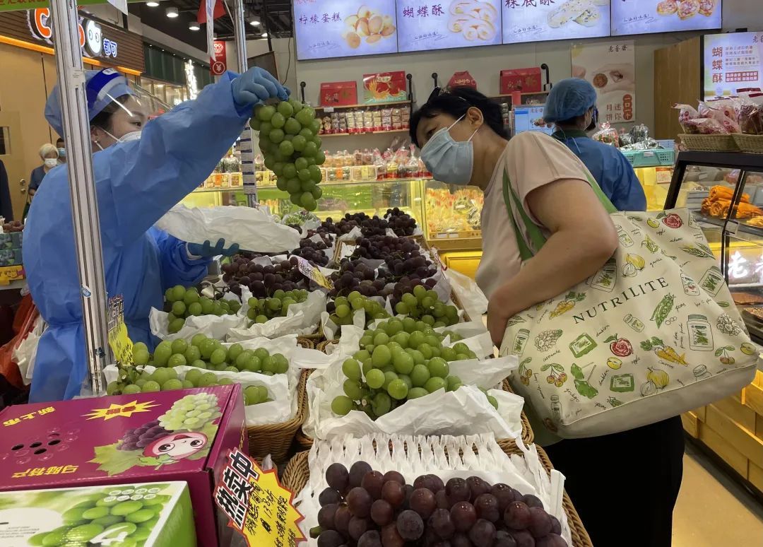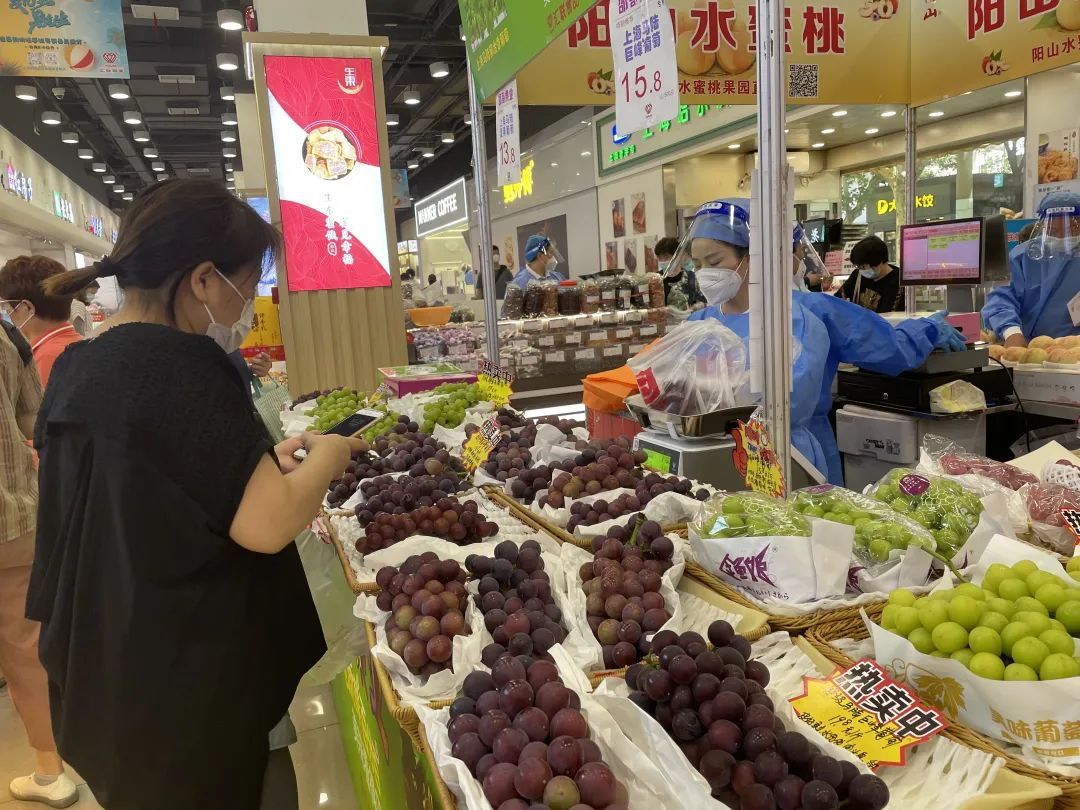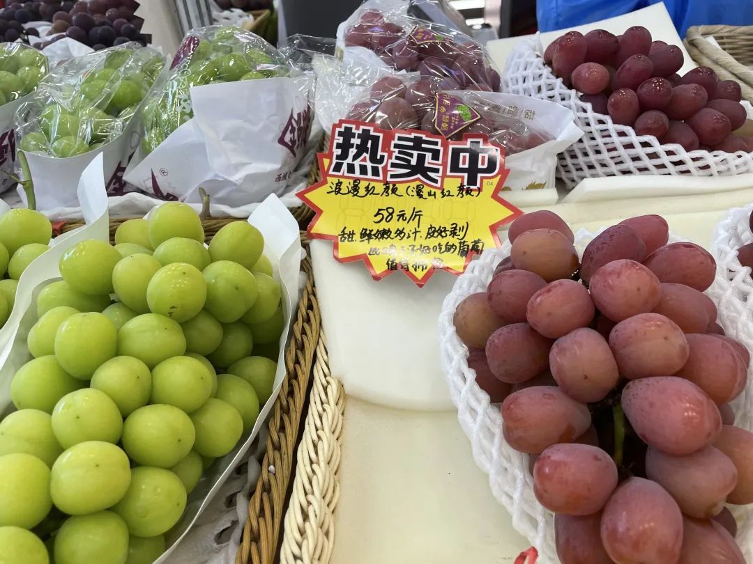 市面上有汁多带着玫瑰花香味的玫瑰香葡萄,由于上市时间短,8月15日左右就会下架,售价19.8元一斤;有本地产的阳光玫瑰,皮会稍厚一点,上市到10月底,售价28~48元一斤不等;还有家喻户晓的上海马陆巨峰葡萄,口感偏酸甜,水分较多,吸一口就吃到了,售价15.8元一斤,当下是马陆巨峰葡萄味道最佳的时候。