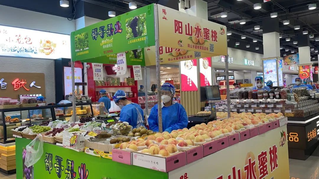 为了保证水蜜桃的品质,周兴荣告诉记者,每天早上四点半先在阳山采摘,基本上能在商场开门之前陆续搬运到上海的柜台。“在采摘过程中一定要保证它的品质,青桃子不采、赤果也不采。”周兴荣展示着新鲜的桃子还带着树叶,每天的销量将近200箱。
