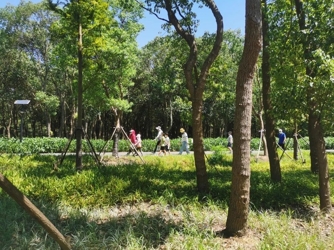 除了室内教学,青少年们还来到户外,参观稻虾共作的农业4.0稻田生态系统,并走进“农林水乡”生态修复示范基地,通过现场沉浸式自然教学,了解生态修复知识。