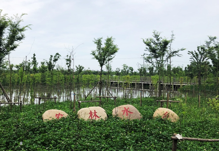 通过改造原有耕地、苗木、涵养林等林下空间,廊下郊野公园“农林水乡”生态修复示范基地于2021年6月正式建成,目前内部划分为水耕区、清水涵养区、水上森林区以及林间湿地等多个功能分区。该项目周边有100亩稻田尾水,依次经过功能分区后,水体内氮、磷、钾等元素被植被充分吸收,成功净化为3类水,可以排放河道,有效减少农业面源污染的同时,也在不断提升周边环境。