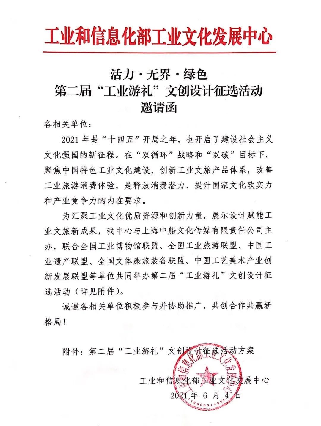 为进一步提升看舰品牌知名度、提高品牌美誉度、扩大品牌市场影响力,传媒公司与工业文化权威机构工业和信息化部工业文化发展中心合作,共同举办了”以“活力·无界·绿色”为主题的第二届“工业游礼文创设计征选活动。在文创设计产品基础上,新增设服务体验类别,旨在展示设计赋能工业文旅新成果、引领文化精神消费新趋势、构建工业文化发展新格局。