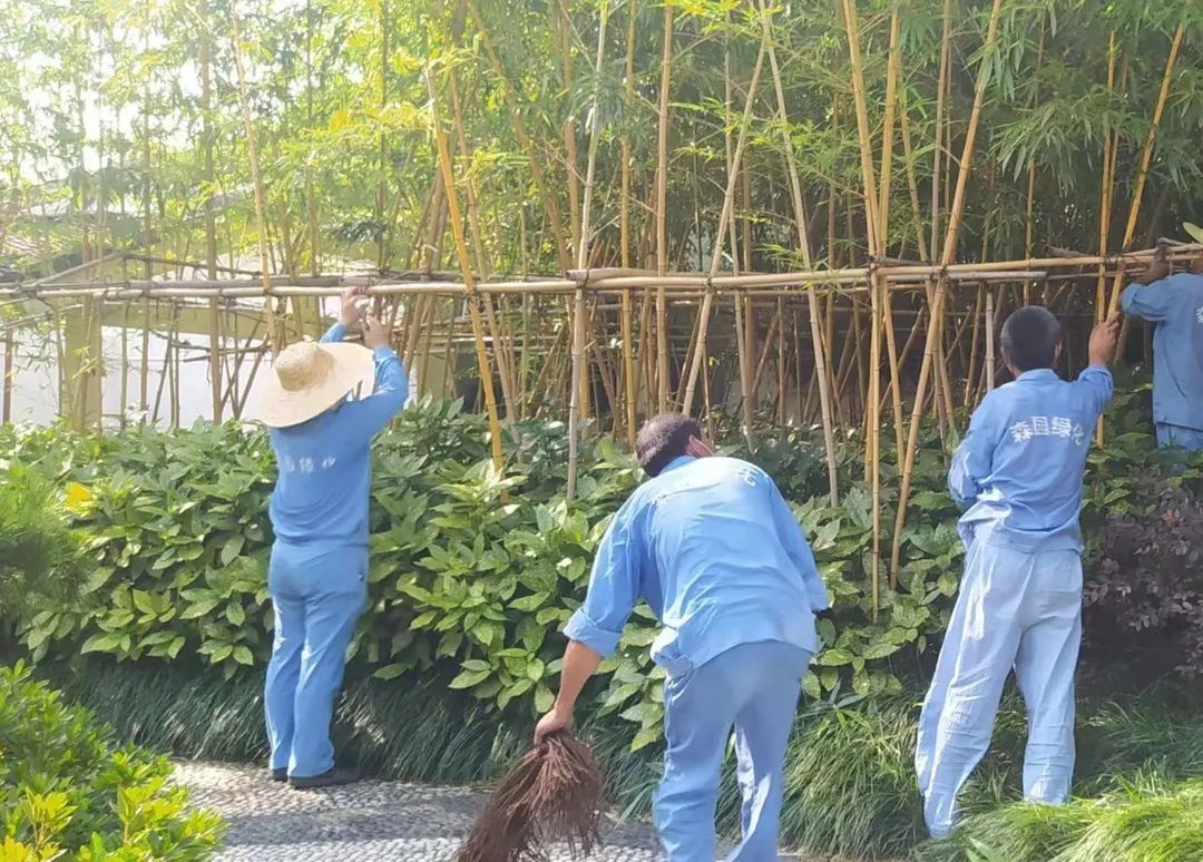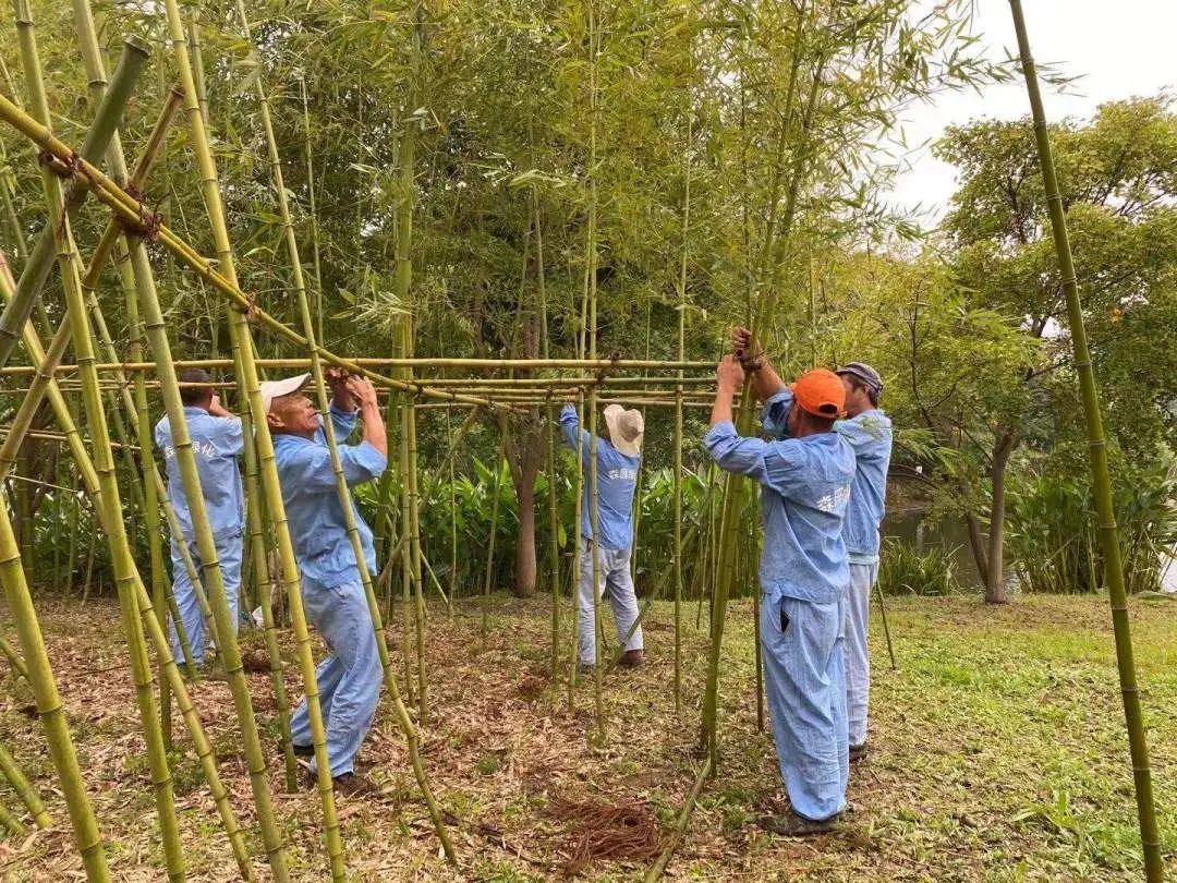 竹林密度过大会影响竹林的整体景观效果,所以竹林密度的合理维持,不仅要切合竹子实际的大小,还要考虑以后新竹子生长的需要,如光照、土壤、水分、空间等,需科学梳理竹林内的老竹、小竹、病竹、弯竹、倒竹,做到“砍小留大、砍密留稀、砍劣留优”,以较好的做到竹林姿态高低错落、大小有致的自然呈现。