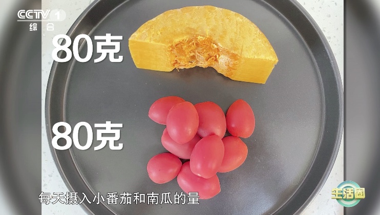 根据《中国居民膳食指南(2022)》里的推荐,我国成年人每天摄入新鲜蔬菜的量不应该少于300克,而β-胡萝卜素正常每天人体需要的摄入量为4毫克左右。根据上述实验结果换算,成年人每天摄入小番茄和南瓜的量控制在80克左右,就可以满足β-胡萝卜素一天的营养需求。