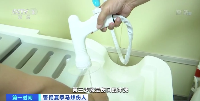 第三步,冲洗伤口。如果是蜜蜂蜇伤,就需要用碱性的肥皂液进行冲洗,因为蜜蜂的蜂毒是酸性的。如果是马蜂蜇伤,就要用酸性的液体冲洗和湿敷,因为马蜂的蜂毒是碱性的。如果是过敏体质的人,伤情可能会比较严重,需要立即到医院就诊。