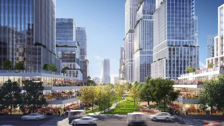 该区域规划定位为将望园路生态商务区塑造成功能聚合、特色突出的城市副中心功能愿景,生态商务区以高能级商业商办、居住、文化休闲等为主导功能,打造动静相宜、开放的森林活力区。