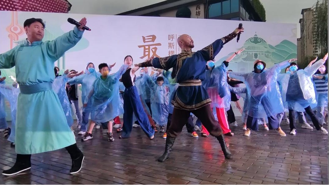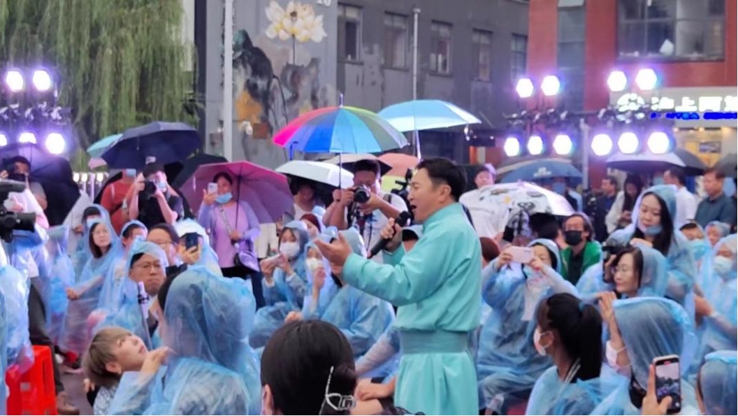 其间,还有其他团队成员表演了马头琴、街舞,山东艺术家表演的山东快书等节目也穿插其中。最后,演出在呼斯楞与李德戈景的歌舞《鸿雁》和众人的齐唱中结尾。
