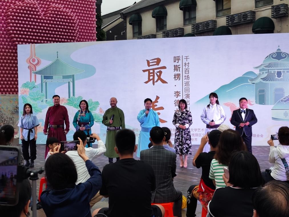 为推动文化交流、推动高品质文艺作品深入群众,来自内蒙古的《最美》呼斯楞、李德戈景千村百场巡回演出山东行今天在济南举行,此次演出是内蒙古《最美》团队首演两年来第一次在外省区演出。