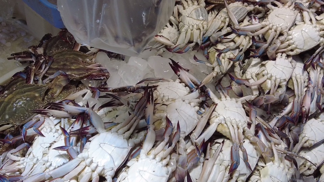 据另一个摊主说,现在根本不需要费力挑选,梭子蟹只只“灵”,看准大小价格,捞上来即可,肉质差不了。