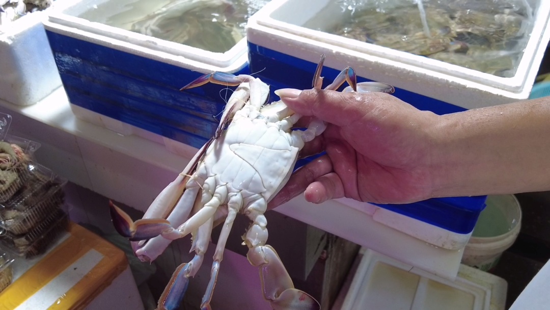 活蟹味道肯定比冰鲜蟹味道要好,不过,与活蟹相比,冰鲜的梭子蟹售价更是在价格上取胜,一般三四两的只需二十元左右一只,冰鲜梭子蟹也是经常光顾菜场,讲究经济实惠的上海阿姨们的首选。