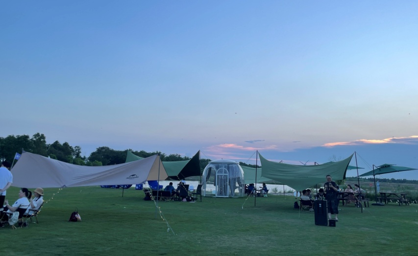 东滩湿地公园星野营地位于园区芳草地,其中,草坪露营区3500平米,林下露营区2000平米,滨水露营区数百平米,提供卫生间、热水淋浴及无人售卖服务,周边风景优美。晚霞渐渐起,夏日的天空格外迷人,在如此美景下,支起帐篷,准备烤架和美食,来一场酣畅淋漓的烧烤派对吧,赏着迷人且热烈的红霞,喝着冰镇过的啤酒,吃着亲手烤的串串,足矣!