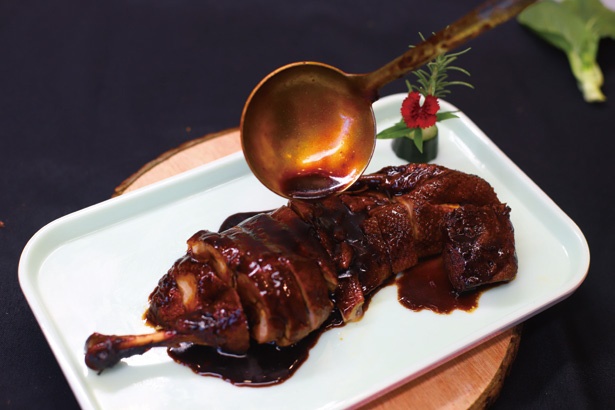 在主打崇明本地特色菜基础上,选用有机种植的当季蔬菜,开发了桔酱鸭、橘味小火锅等特色美食。