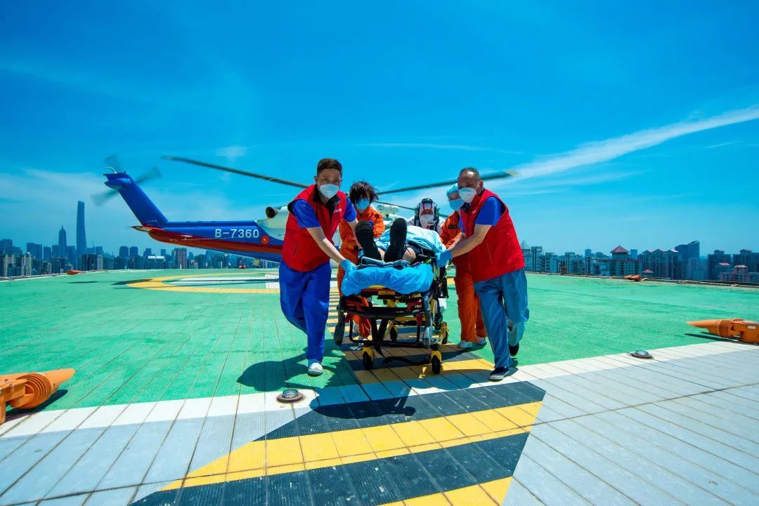 8月9日上午,一位50多岁的船员在工作时被设备割伤腿部,伤口深可见骨,东海救助局第一飞行队接到求救后,立即与瑞金医院联系,得到“可以收治”的答复后,直升机于10点40分到达现场,接到患者后前往瑞金医院,11时25分,直升机平稳降落于停机坪。