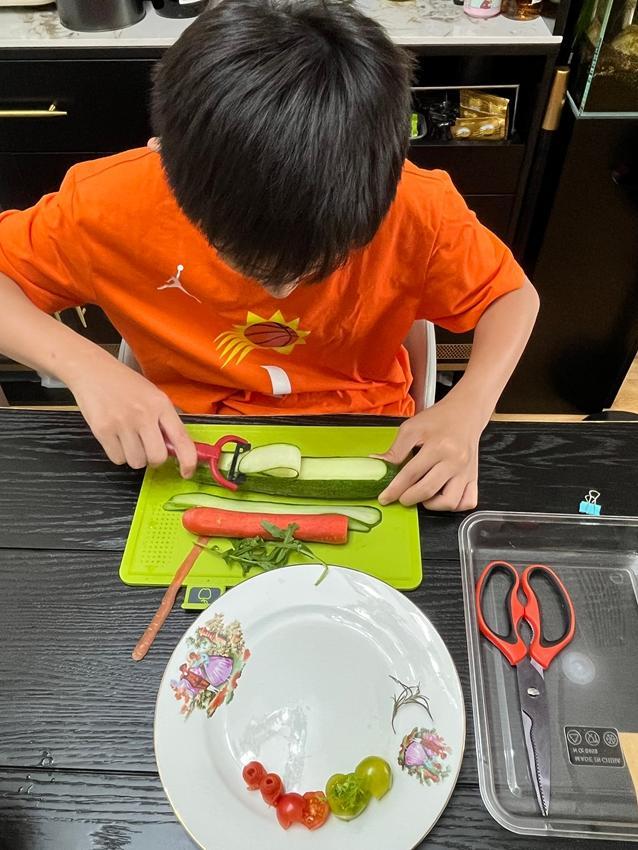 七年级的同学们在“DIY理财手账”的体验中过了一把“当家作主”的瘾,在实践中学习如何正确地花钱、记账。有的同学则与父母一起学习了“创意盘式围边”,富有创意的盘饰,能让菜肴呈现出艺术感,真正做到色香味俱全。
