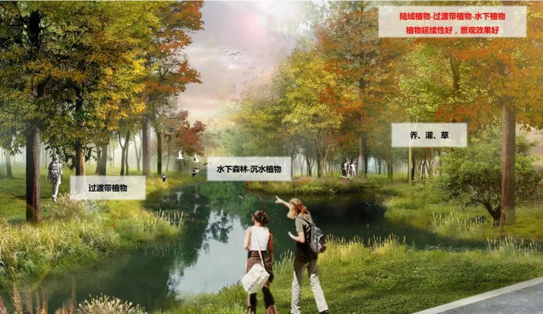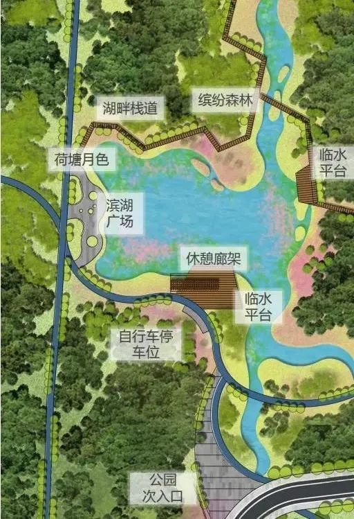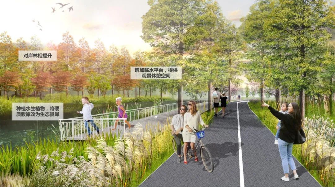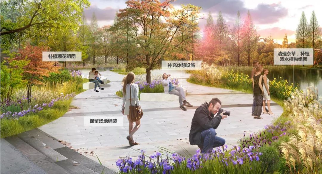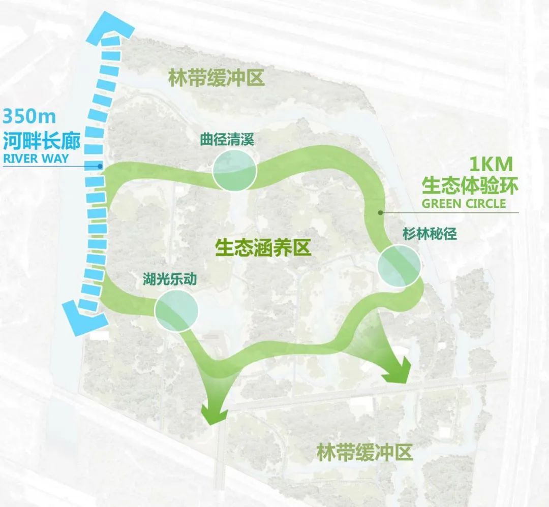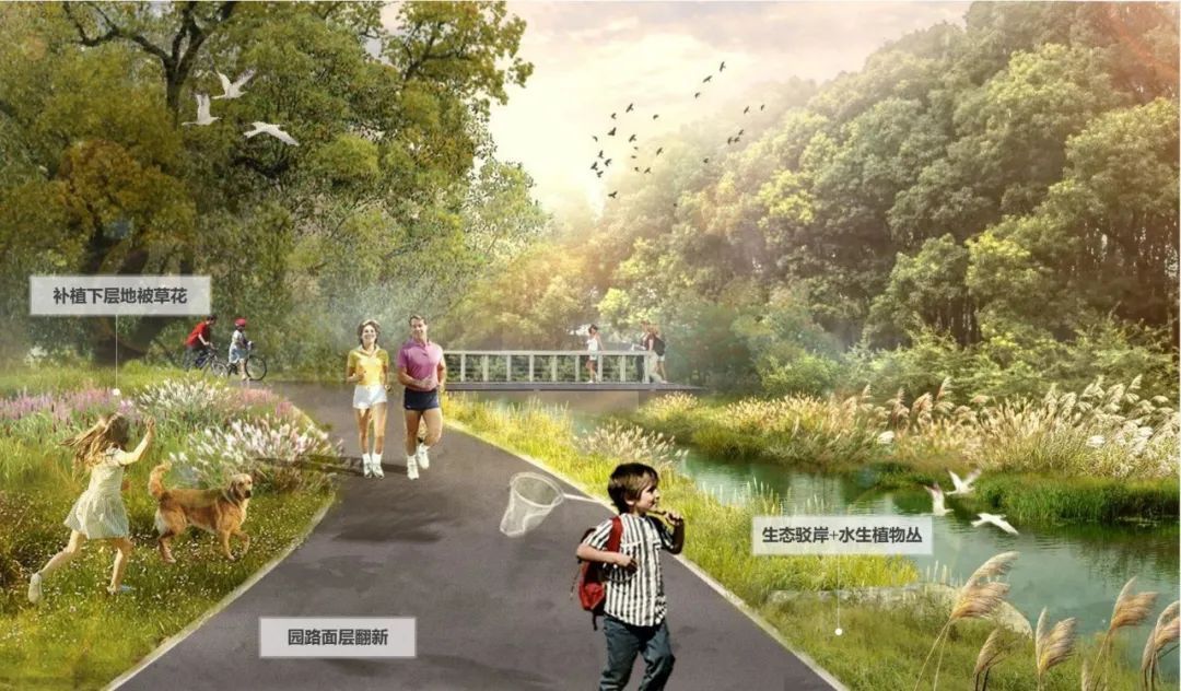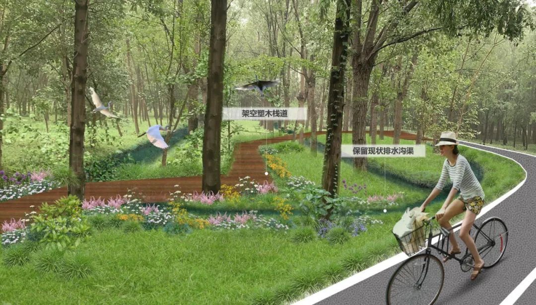 “设计定位上,以保护利用原外环林带生态本底风貌为原则,利用现状水系资源,打造生态体验环、河畔长廊,以及杉林秘境、曲径清溪、湖光乐动组成的‘一环 一廊 三点’五大功能区域,实现从林地到公园的‘身份转变’。”陆怡婷介绍。