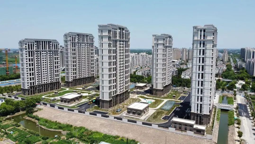 目前4栋建筑已完成主体结构,室内装饰工程已完成80%,室外总体工程已完成50%,外墙涂料工程已在施工,项目整体已经初具雏形。计划于8月底完成实体工程,2022年12月份完成竣工备案并交付。