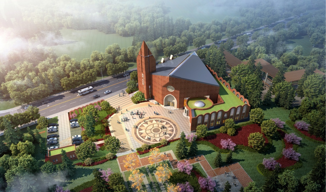项目位于奉贤新城04单元,东至14-04地块,南至公共绿地,西至14-06地块,北至运河路。项目共包含2 个单体,天主教堂及配电房,天主教堂建筑面积3517.74平方米,二层框架结构,建筑高度23.5米,一层为礼拜堂、弥撒堂及辅楼,辅楼内设有门卫、会议室、休息室、接待厅、设备用房等。项目场地面积为6821.5平方米,场地内共设有机动车停车位19 个,非机动车停车位81 个。