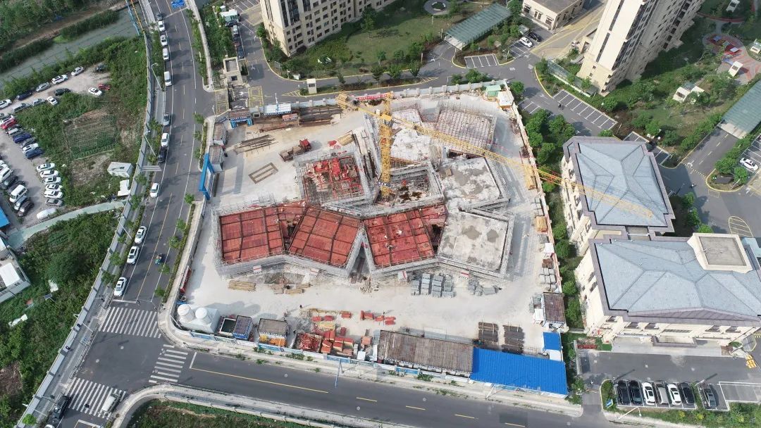 目前项目处于主体结构施工阶段,二层框架结构已完成,剩余网架屋面及塔楼预计10月初完成,结构施工完成后进入装修施工阶段,计划2023年3月完工。