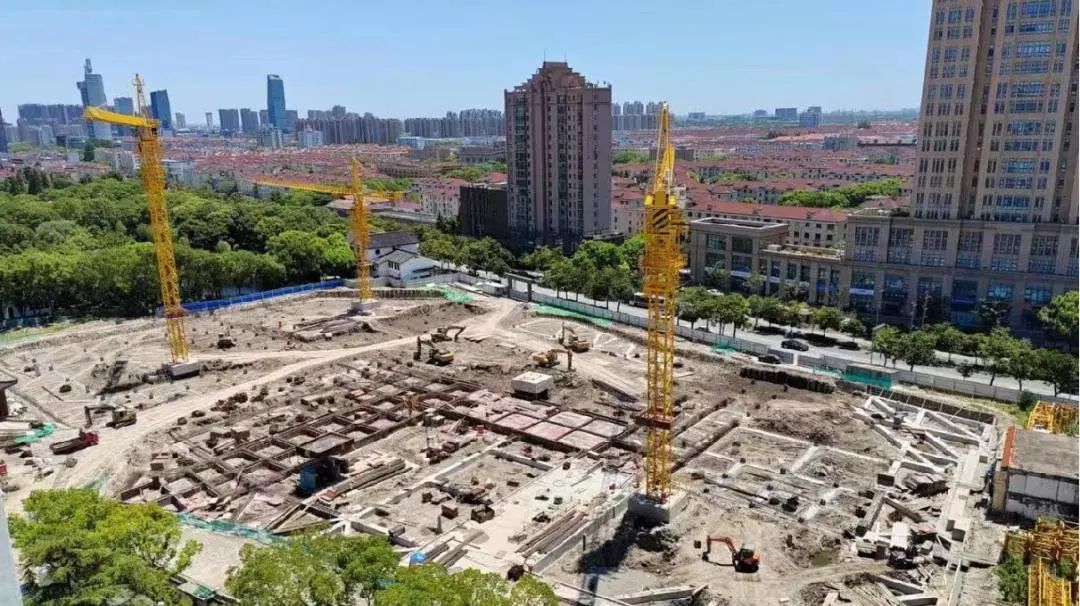 目前南区处于地下结构施工阶段,北区处于主体结构施工阶段。