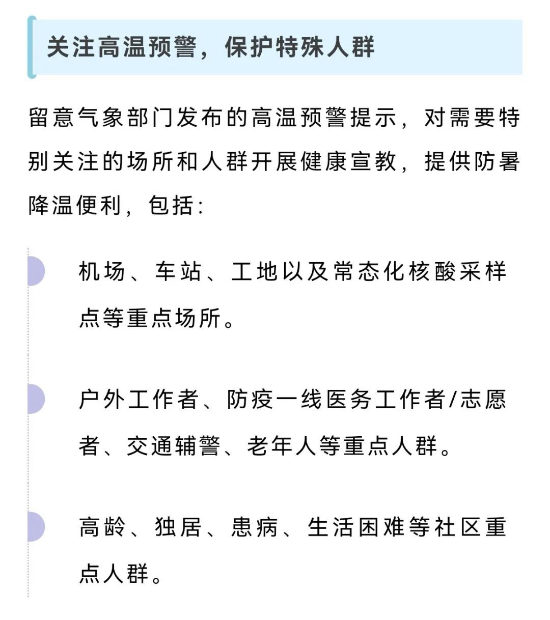 因此建议,一旦出现头晕、头痛、全身疲乏、心悸、注意力不集中等先兆中暑症状,及时脱离高温环境、采取现场降温措施。出现意识不清、抽搐等重症中暑症状,及时就医/送医。
