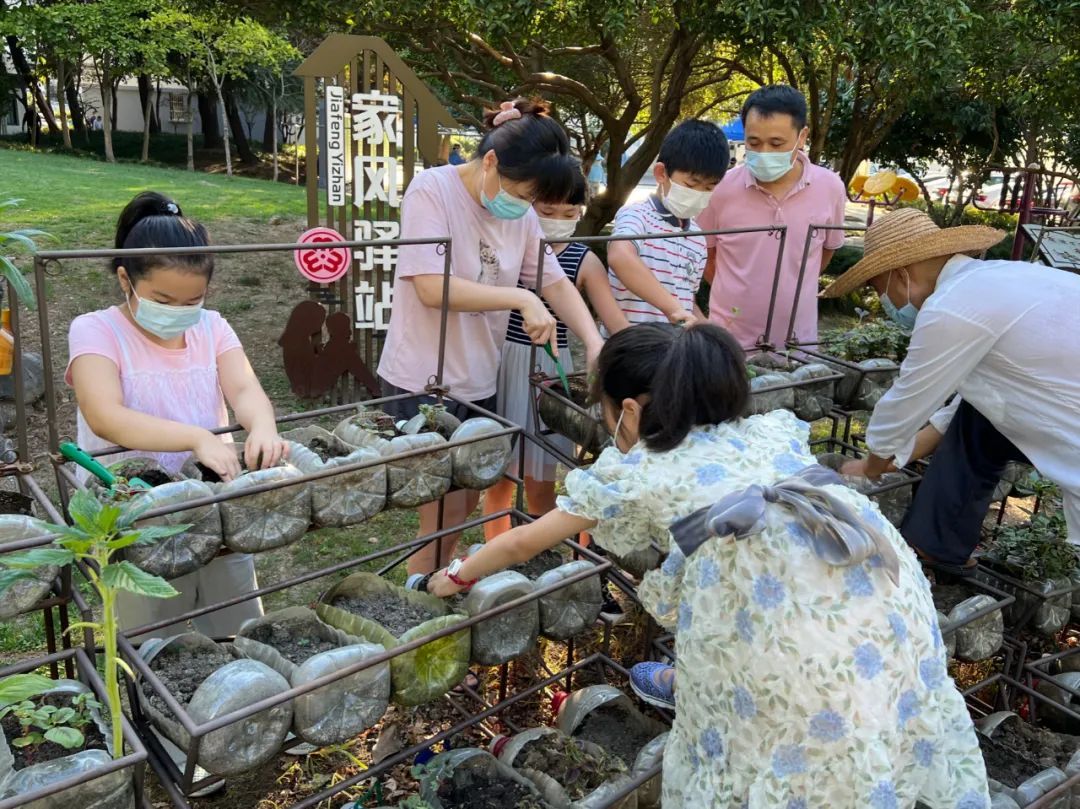 据悉,“亲瓶菜园”是龙兴居民区去年4月份启动的“家+课堂”社区自治项目。启动以来,社区内百余户亲子家庭参与,利用废品巧制“花盆”,种植养护蔬果,共建社区菜园,体验收获的快乐。“各种蔬菜的成长周期各不相同,小菜园的收获时节也没有什么规律。”作为“亲瓶菜园”的“园丁”,顾军国告诉记者,像这次种植的向日葵和西葫芦,成熟结果可能需要几个月,在此期间,他会带着小朋友和家长定期做好浇水、施肥等养护,在教会小朋友耐心等待收获的同时,也让每一户亲子家庭在小区里感受一份自然之趣。