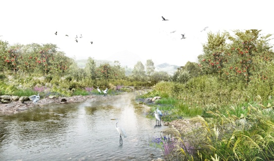 施工过程中,对保留现状的植物进行提升优化,同时补种挂果期较长的浆果类植物,如枇杷、柿子等,丰富不同季节林鸟的食物来源,吸引更多鸟类来此栖息。待升级完成,大家可以在此拍照观鸟,感受“落霞与孤鹜齐飞,秋水共长天一色”的别样景致。