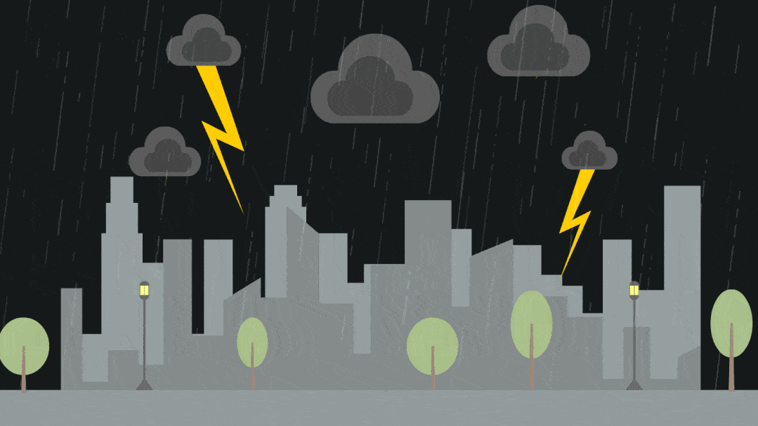 不要在大树、电线杆、高架铁塔等建筑物下躲雨