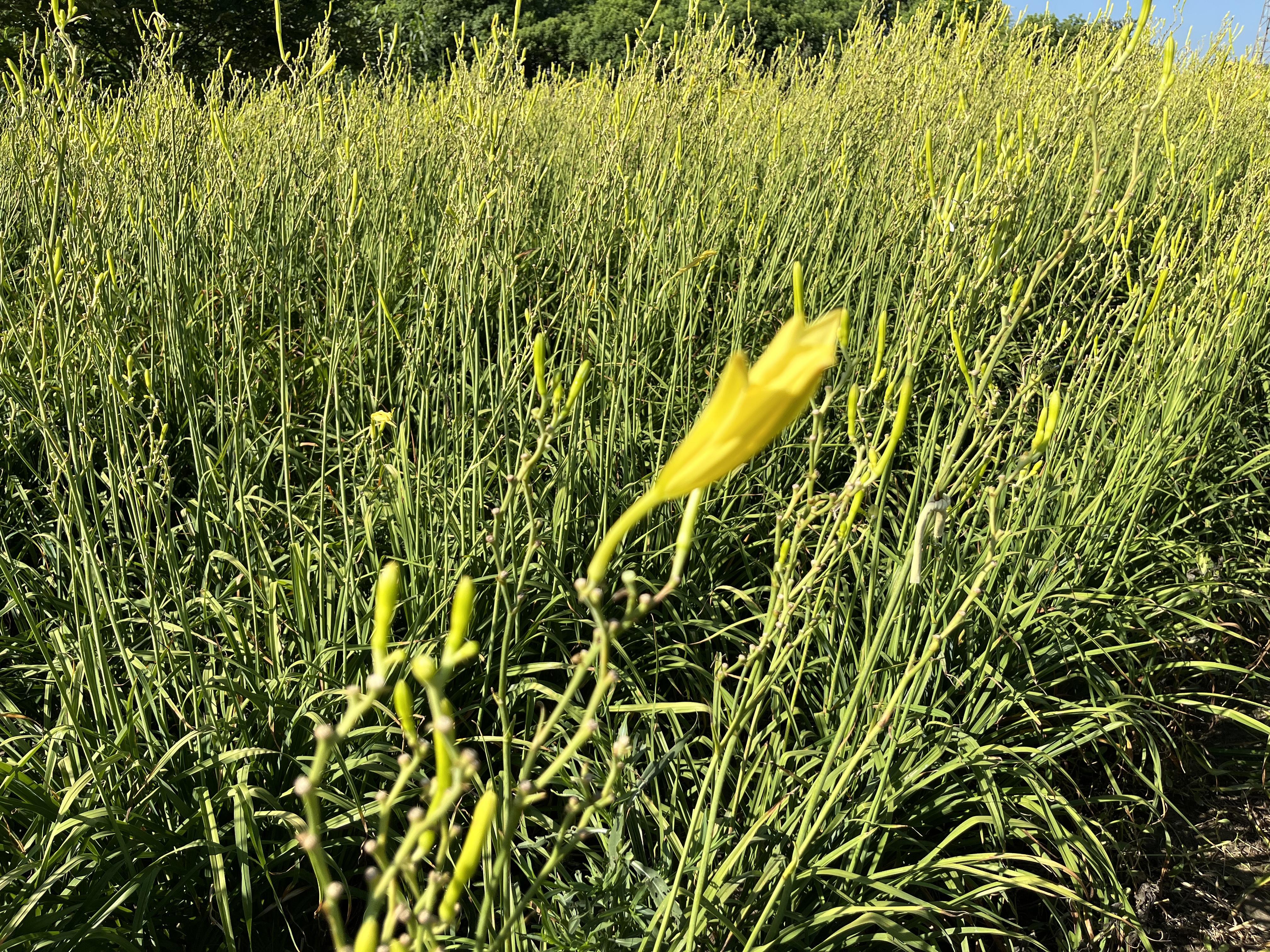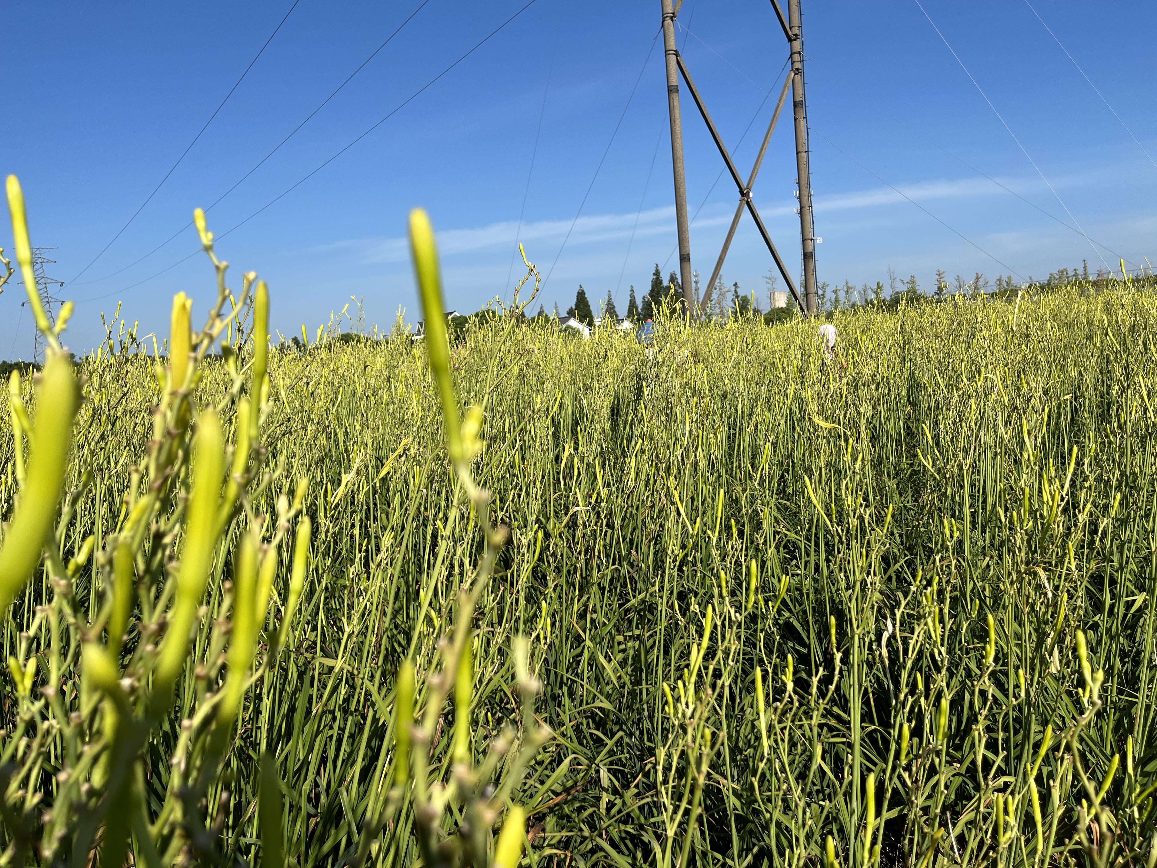 一阵风吹来,一朵朵含苞待放的花骨朵随风摇曳,甚是好看。放眼望去,整个田地如同铺上了一层金色地毯。“莫道农家无宝玉,遍地黄花是金针。”其实在湖南、陕西、甘肃等地,黄花菜一直是当地农民的一种重要经济作物,近年来也常出现在上海市民的餐桌上。成熟后的黄花菜既能食用也可药用,既能卖鲜花也能制成干货卖,有多元复合销售方式,一般不存在滞销问题。