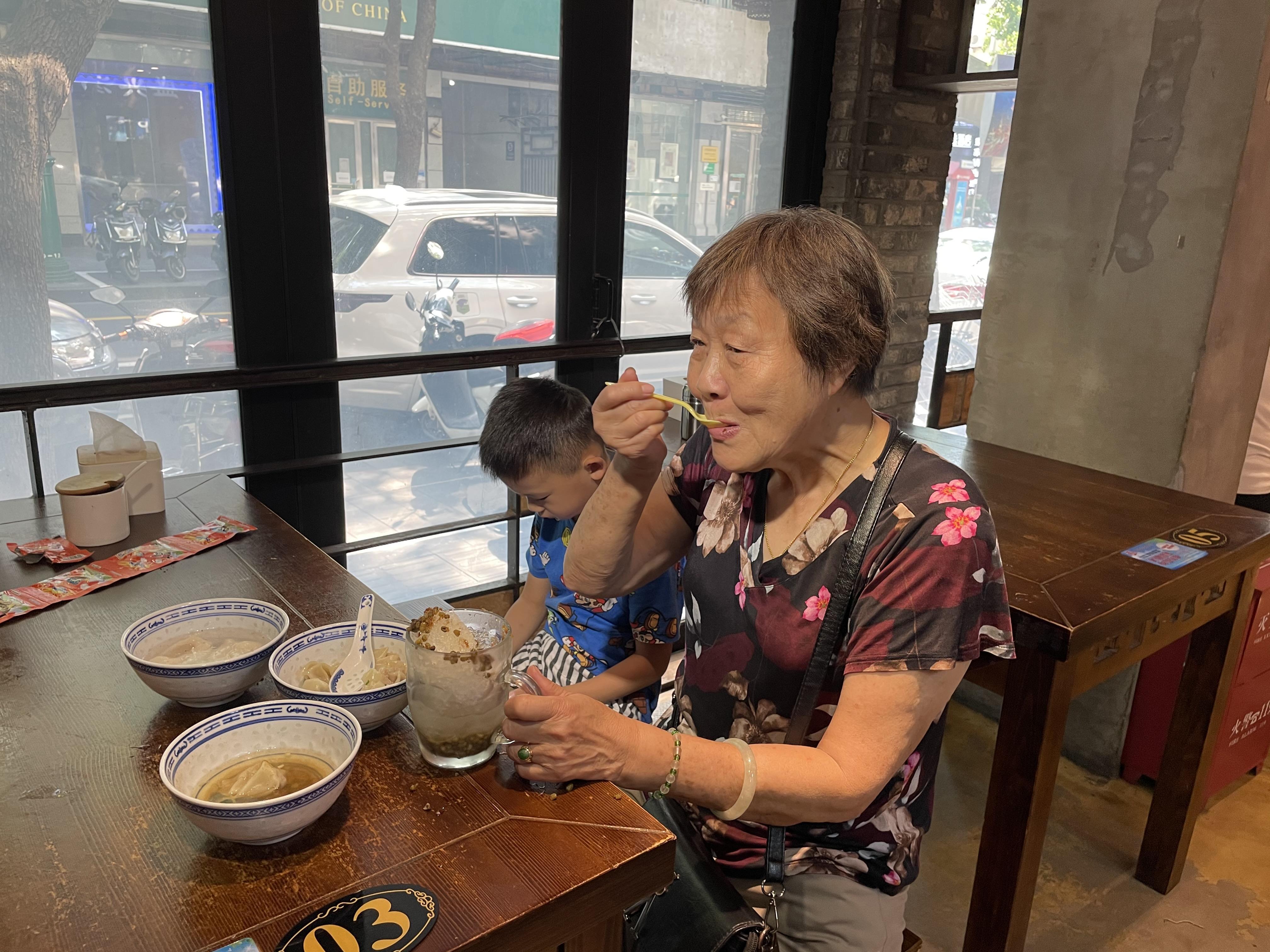 “早上我路过淮海路思南路口,发现这里新开了一家盛兴汤圆,想着是不是以前一直吃的盛兴,决定进来张望下,一眼就看到了正在包馄饨的‘胖阿姨’,以及熟悉花纹的汤碗和调羹,当即就确认是这家,先点碗全家福尝尝,里面有五个馄饨两个汤圆,吃完色色一一,再带几盒生馄饨回家。”8月11日早上,住在附近的居民林阿姨路过此处,熟悉的店名吸引了她的注意,但由于位置不同,林阿姨还小心翼翼地确认了一番,在得到肯定答复后,当即就进店体验,她欣喜地说道,“相比老店,新店环境更好了,但依然还是那个老味道。”