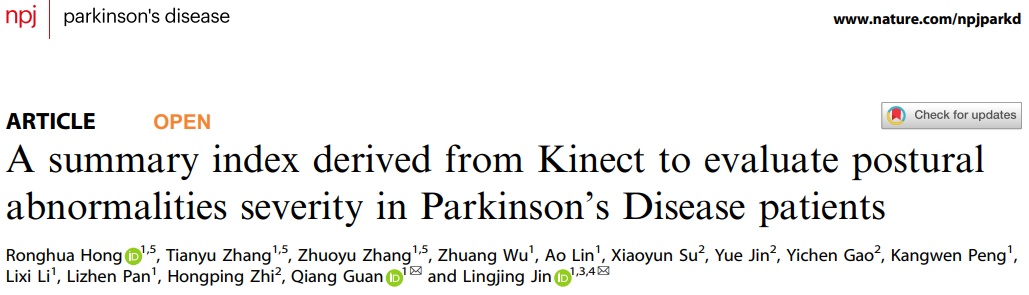 2022年8月2日,同济大学附属同济医院、同济大学附属养志康复医院靳令经教授团队,联合科大讯飞苏州研究院支洪平研究团队,在Nature合作期刊npj Parkinson’s Disease杂志线上发表了最新研究成果“A summary index derived from Kinect to evaluate postural abnormalities severity in Parkinson’s Disease patients”,提出了帕金森病(Parkinson’s Disease, PD)躯干姿势异常评估新指标,即躯干姿势异常指数 (the index for postural abnormalities, IPA),实现了PD躯干姿势异常严重程度的客观、量化评估,还可用于PD与同龄健康人的鉴别,以及PD有无躯干姿势异常的鉴别,具有很好的敏感性、特异性和准确性。同时该研究进一步证实了躯干姿势异常作为PD的核心表现,贯穿疾病始终,为认识PD躯干姿势异常的动态演变过程提供了新思路。