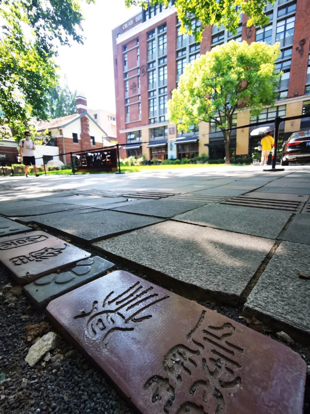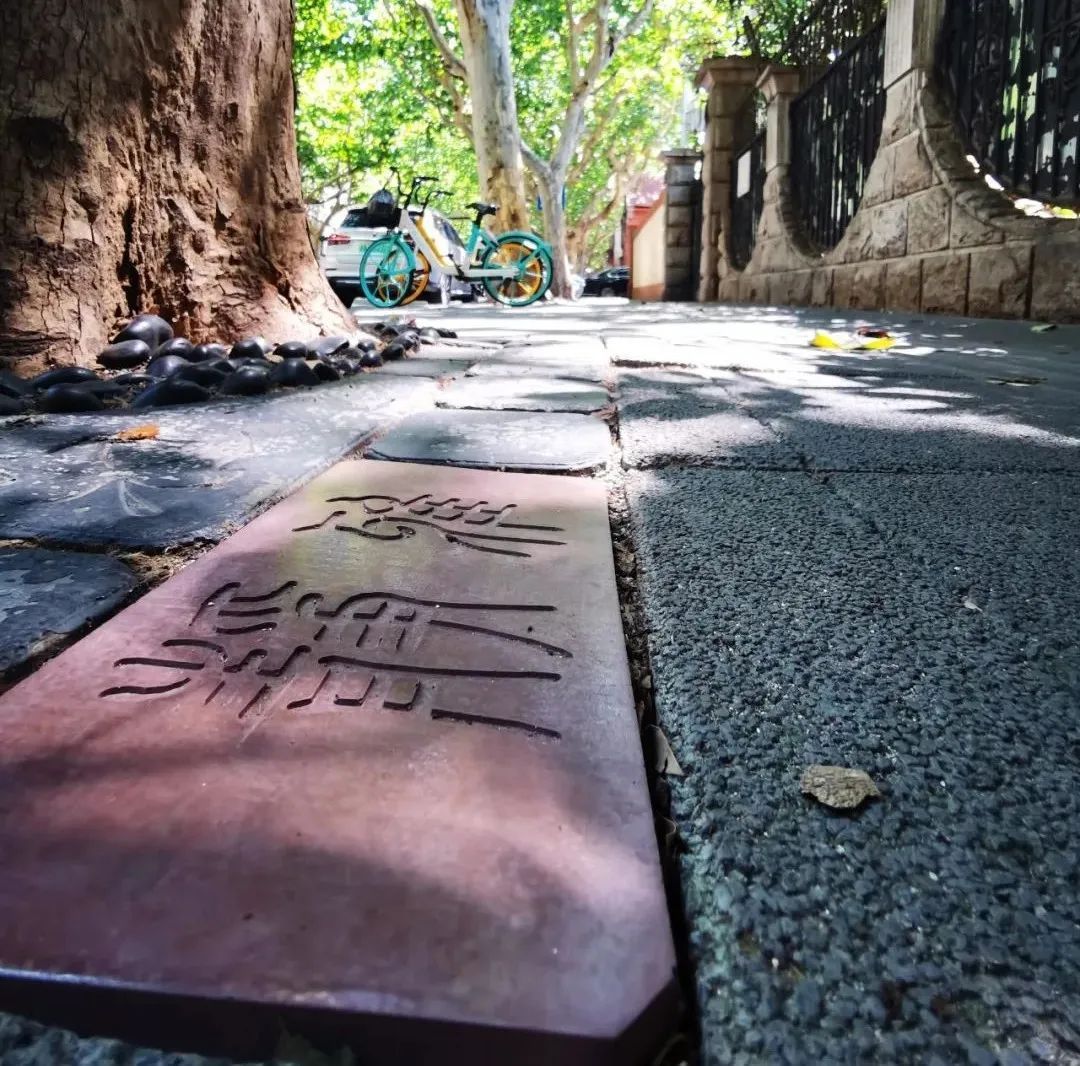 记者在愚园路上看到,道路两侧每一株梧桐树下的树穴盖板均有新变化,原本青灰色的“雪花”方砖变身为印有艺术愚园、人文新华、静雅武夷以及漫步番禺等小篆字体的红色长砖,让原本不起眼的树穴盖板变身为“形象大使”,在一砖一瓦间,展示美丽街区的艺术人文气质。