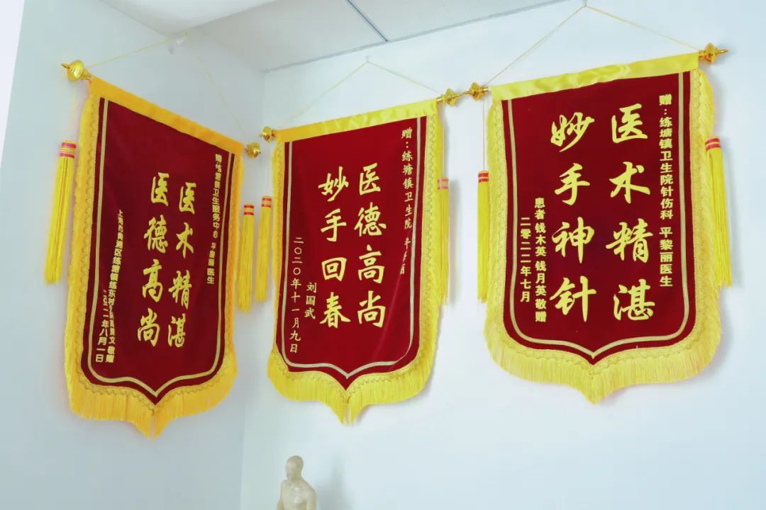 为他治疗的是练塘镇社区卫生服务中心的针伤科主治医师平黎丽,从事中医针伤临床工作二十余年,对肩颈腰腿痛的针灸、拔罐、推拿、理疗、康复治疗有着丰富的经验。这些年,其精湛的医术、高尚的医德更是广受患者们的赞誉,也收获了一面面锦旗。“不光是老年人群体,随着‘上班族’肩颈腰肌劳损发病率逐年上升,具有疏通经络、调和阴阳、扶正祛邪、调和气血等好处的针灸疗法广受青睐。”平医生介绍道。