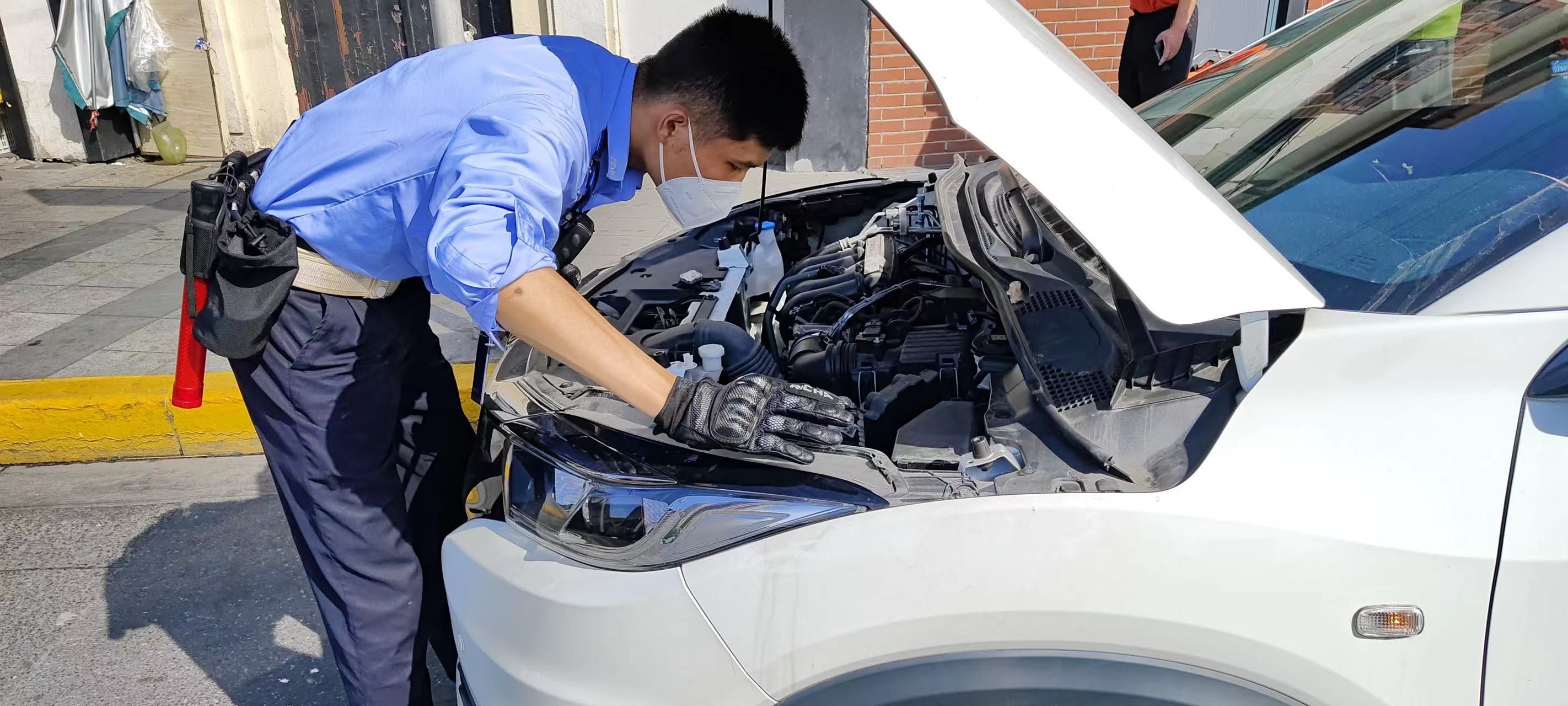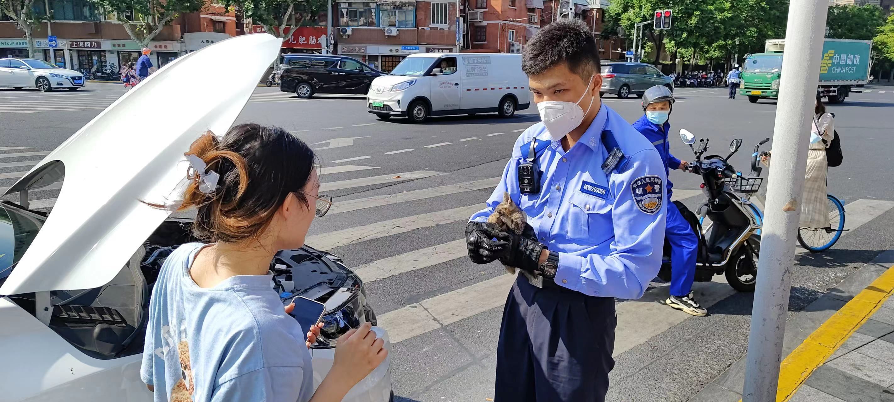 日前,在静安区新闸路万航渡路路口,出现了危险又暖心的一幕。一位女士驾车行至这一路口等红灯时,发现车子有异响,于是向正在路口执勤的静安分局交警一大队勤务辅警张敏翼求助。